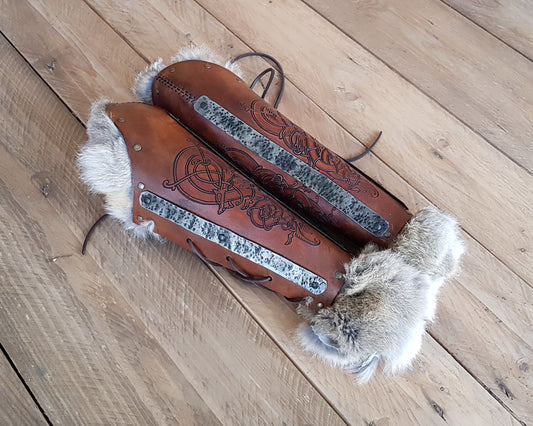 Celtic horse engraved leather vambrace