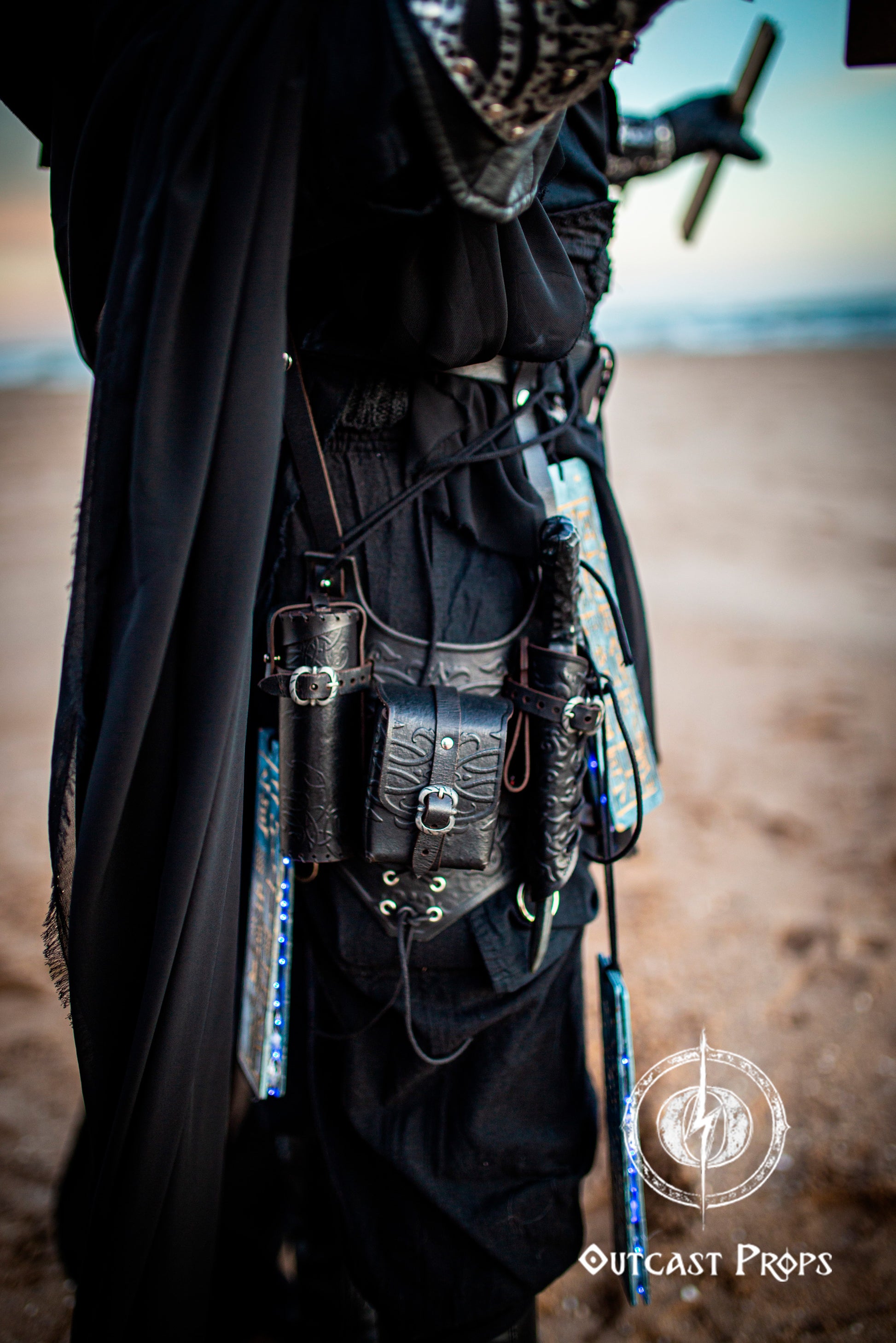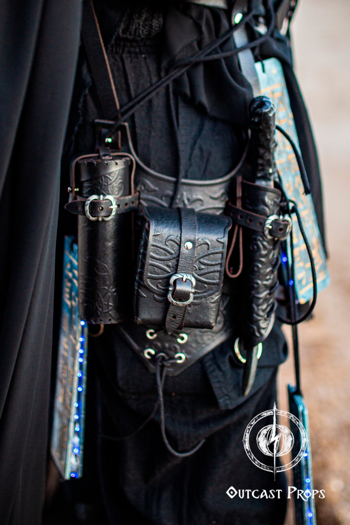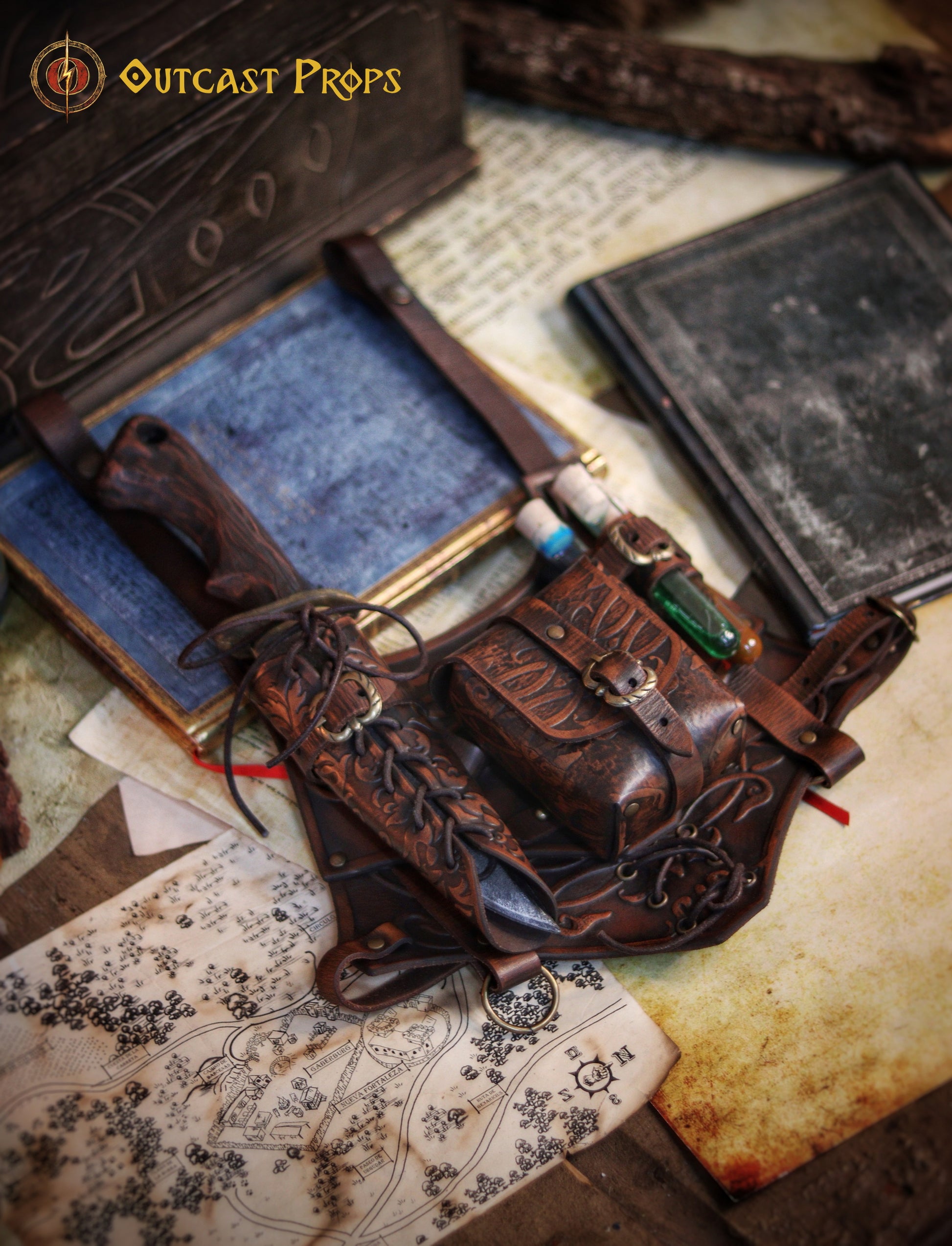 Multi-use accessories: Belt pouch, potion holder, scroll case, and dagger sheath can be used on the thigh harness or independently on a belt