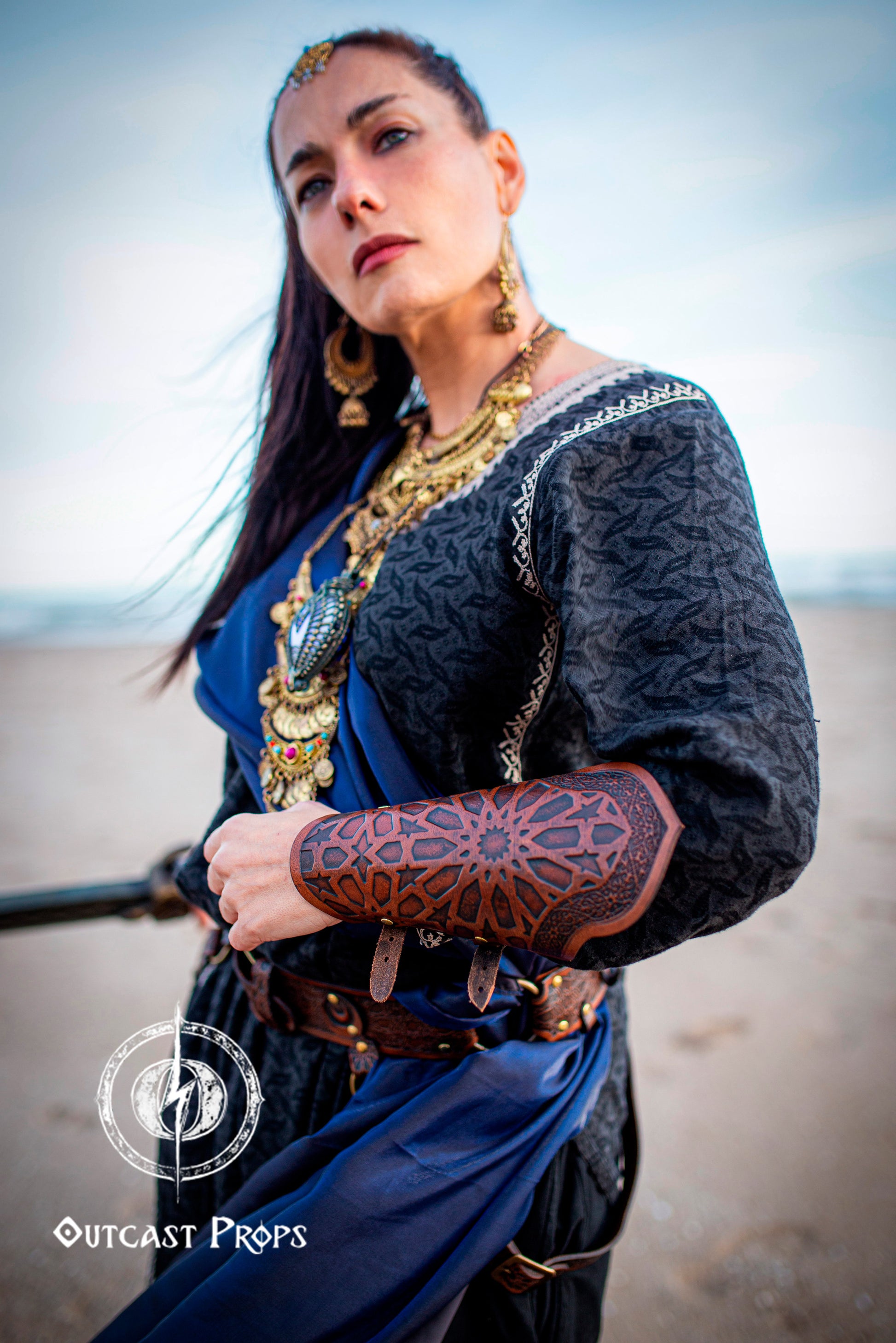 Bring the elegance of ancient craftsmanship to your outfit with our Alhambra Leather Bracers — a handcrafted pair of arm guards inspired by Persian, Moorish, and tribal aesthetics. Whether you're a desert nomad, a warrior monk, or a Ren Faire rogue, these bracers are made to complete your legendary look.