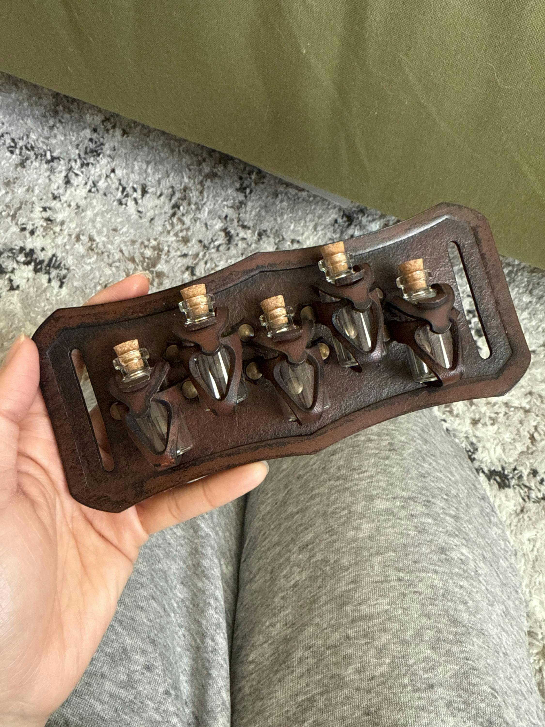 Note: Search in our shop for others potion holders (2, 3, 4, 5, 6 potions)... and different leather colors.