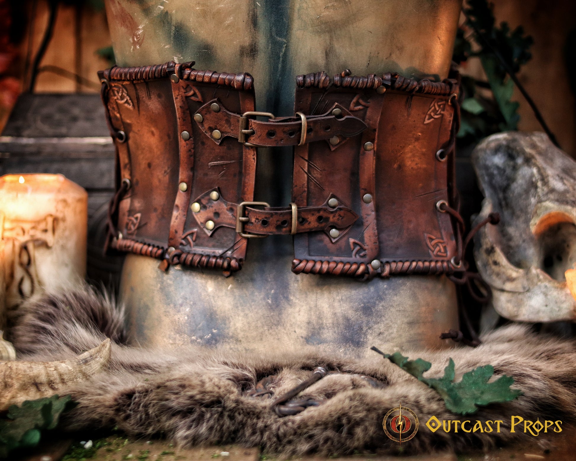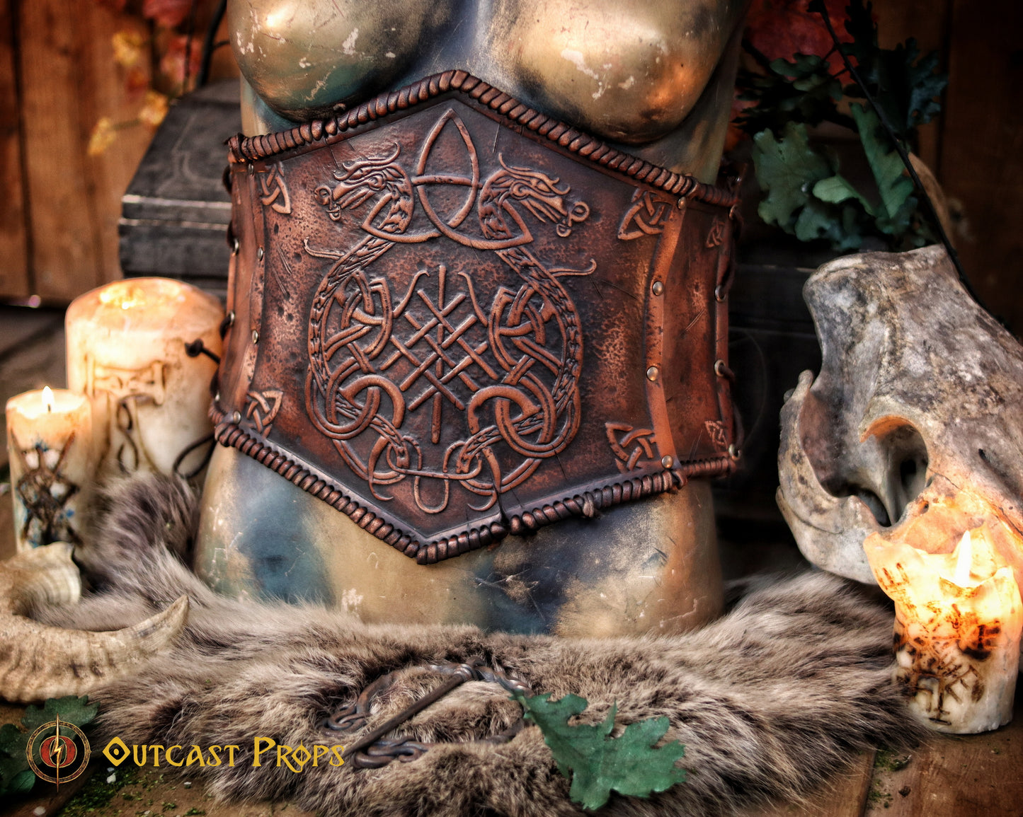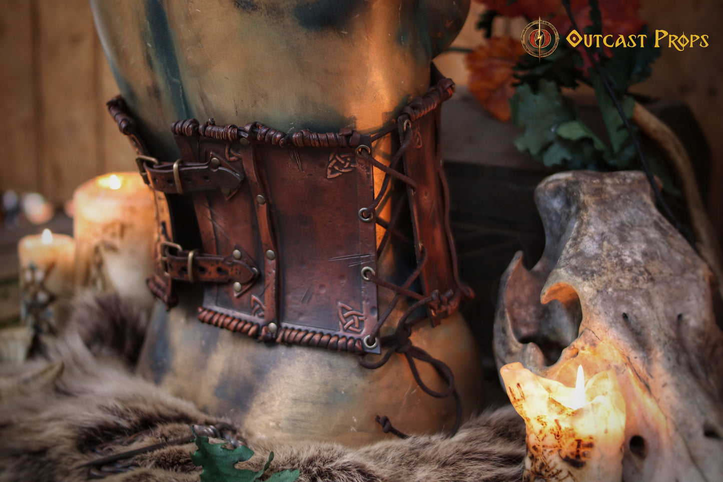 Authentic Details: Inspired by historical Viking and Celtic motifs, the corset showcases intricate embossed designs and decorative accents.