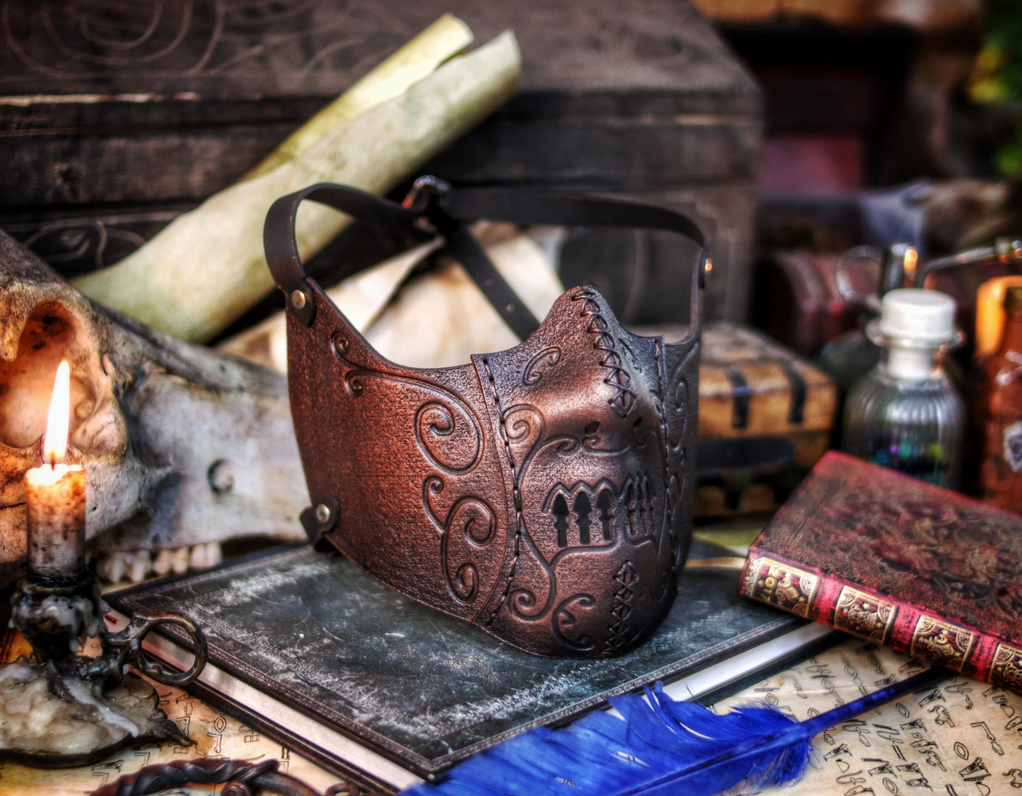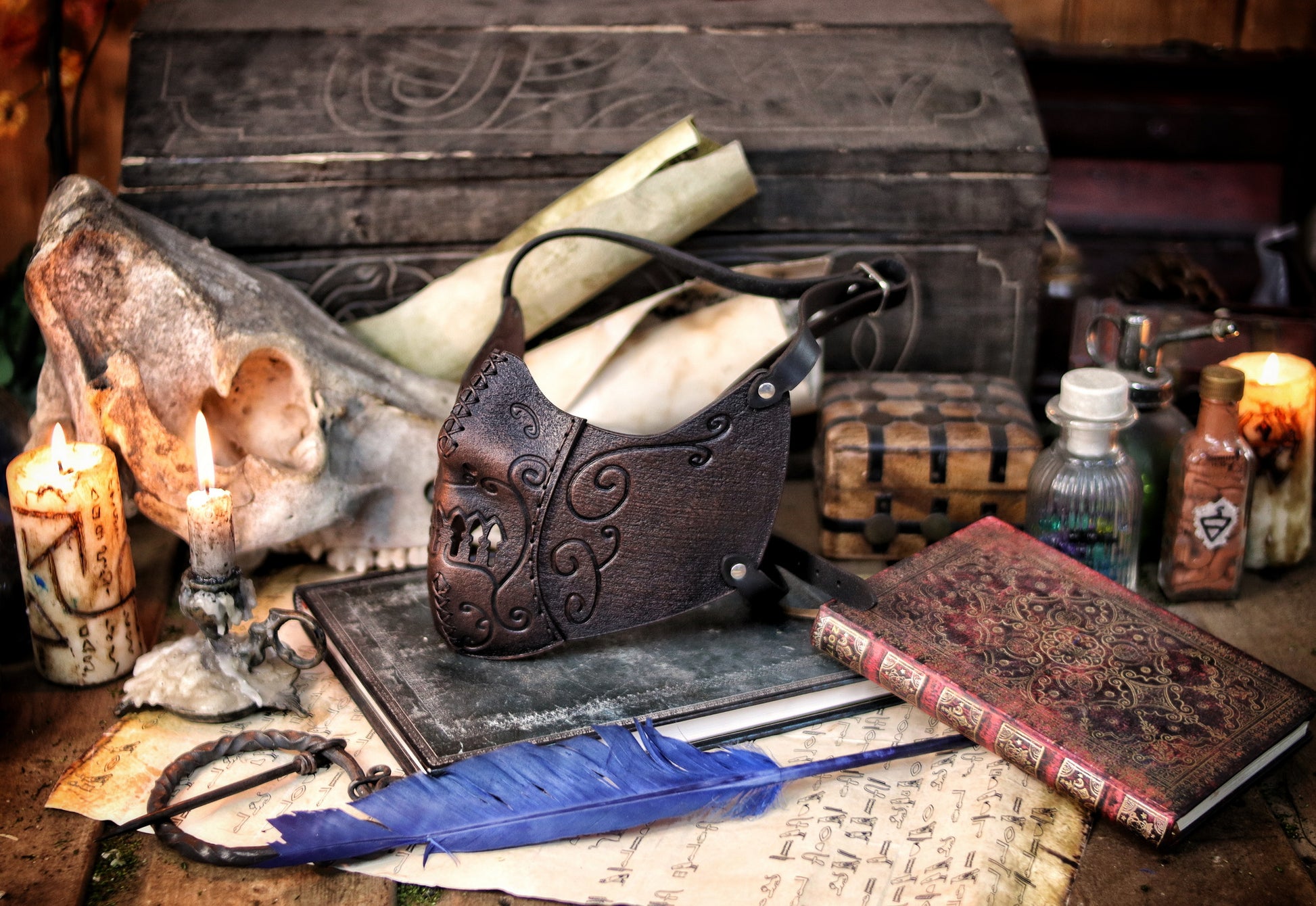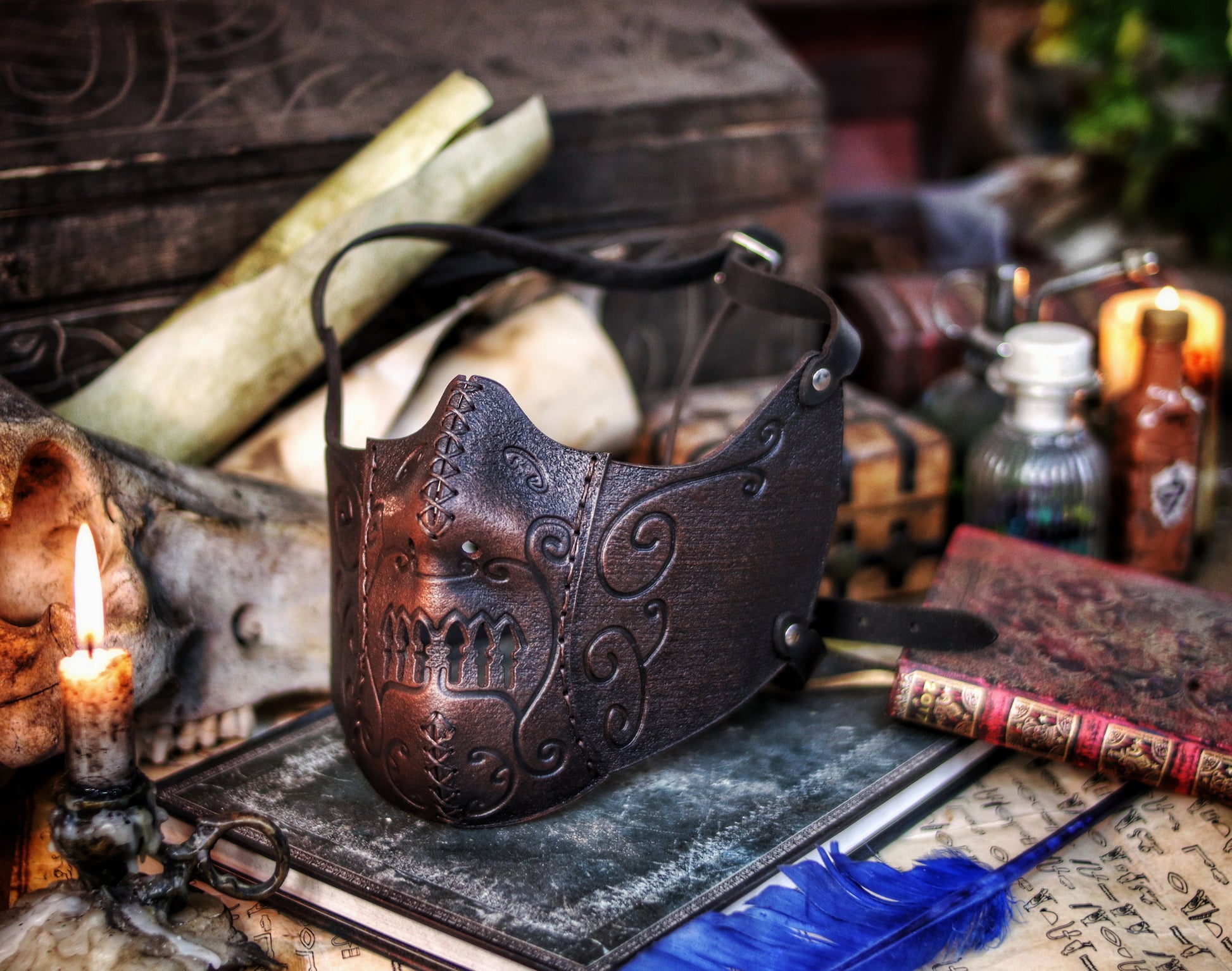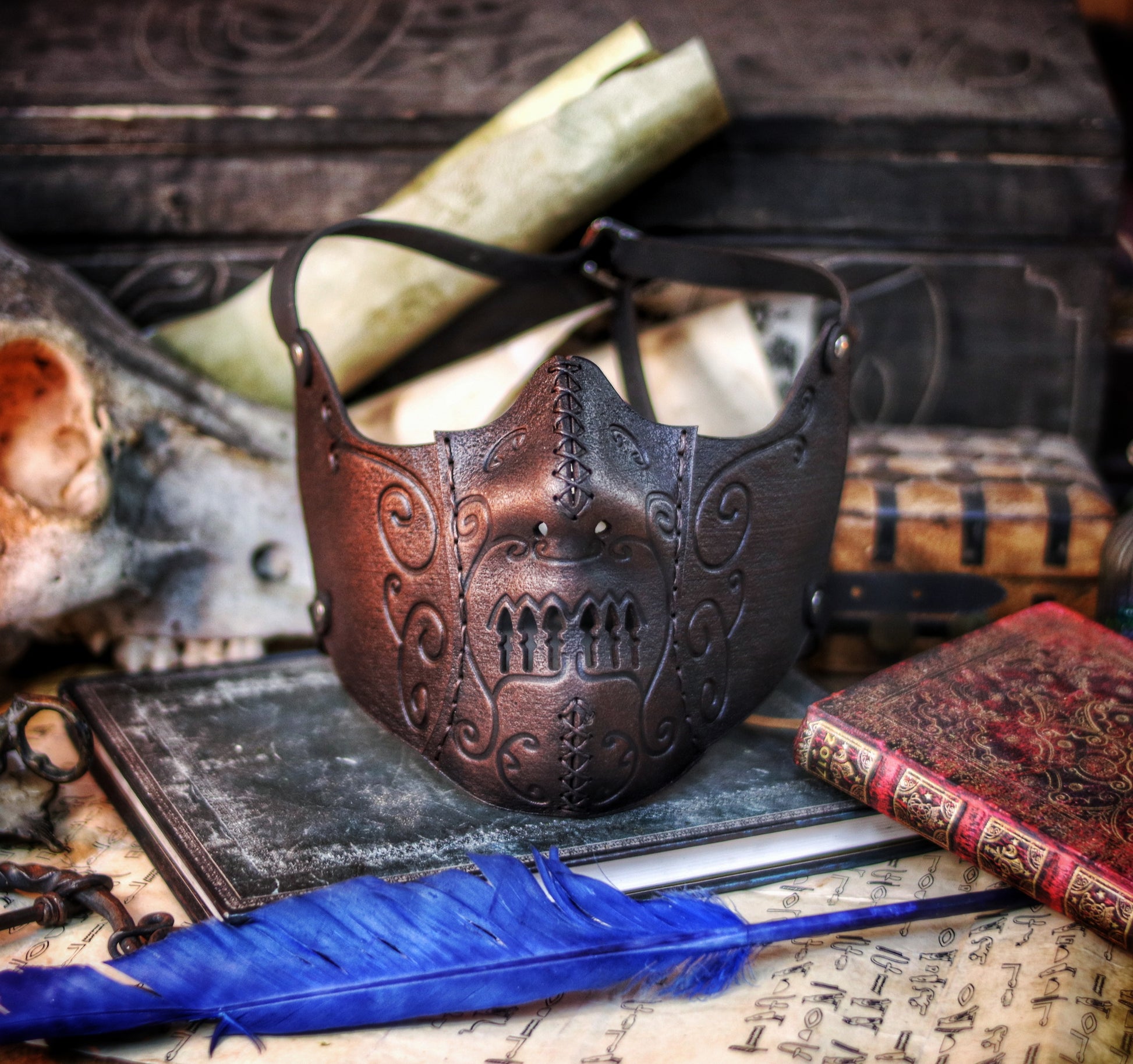Securing with two adjustable buckles at the back of your head and featuring carefully placed holes for breathability, this mask becomes a seamless extension of your identity, allowing you to embody the power and elegance of the dark arts.