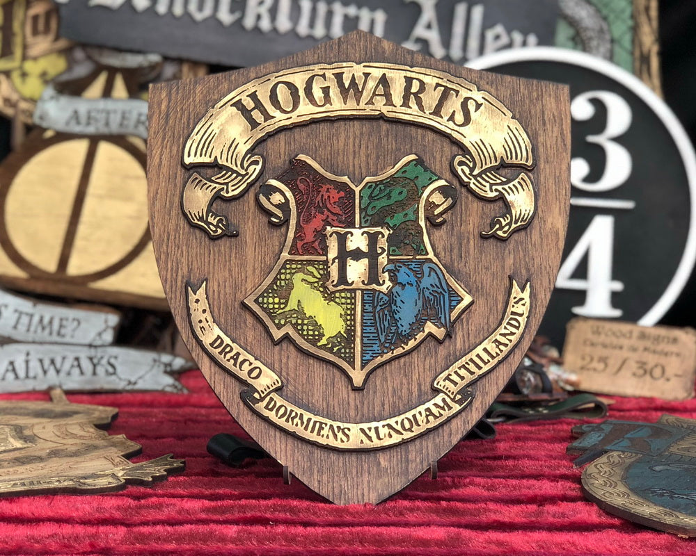 If you are a fan of Harry Potter and the whole saga of J.K. Rowling, surely this wood signs will bring you good memories: Platform 9 ¾, Diagon Alley and Knockturn Alley, The Three Broomsticks, The Leaky Cauldron, the symbols of the Houses, and all those that you want, you can find them in our store.