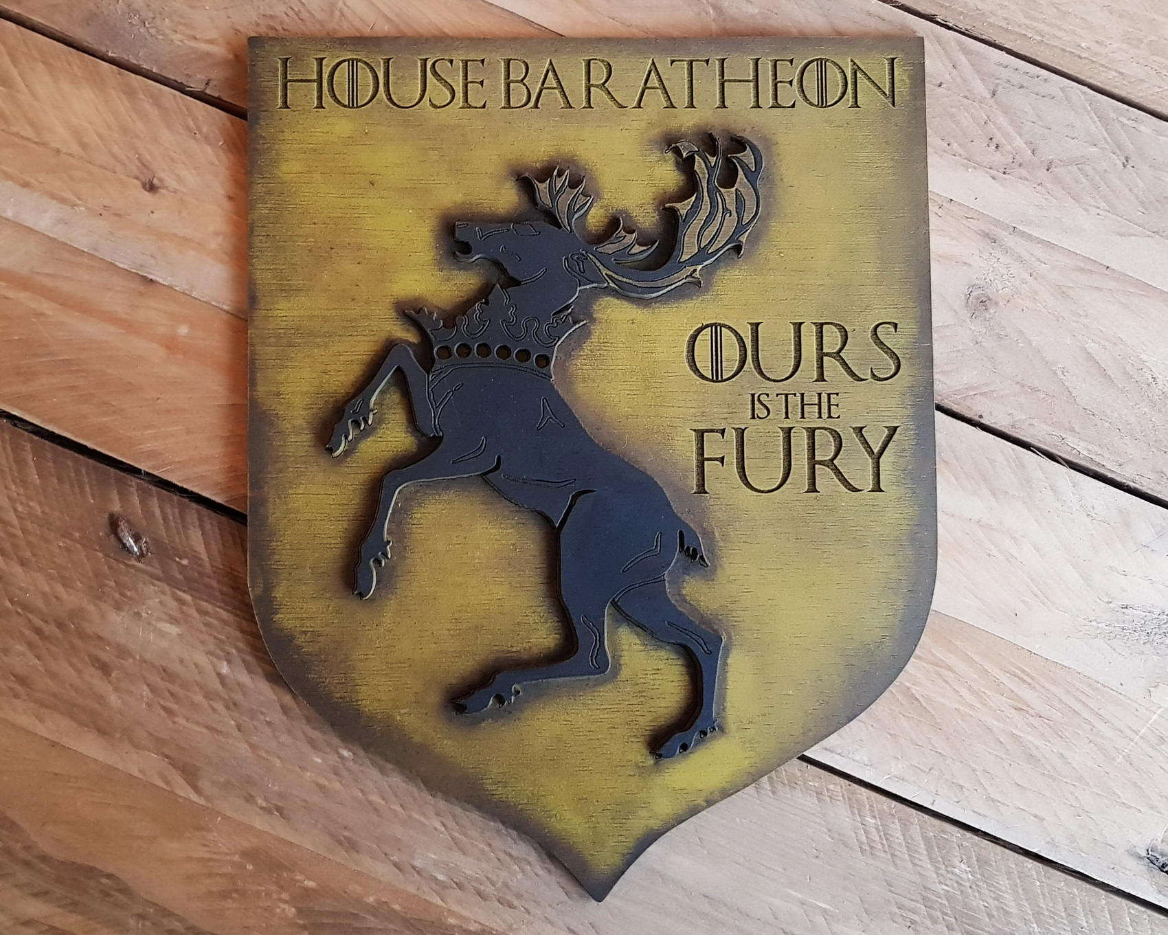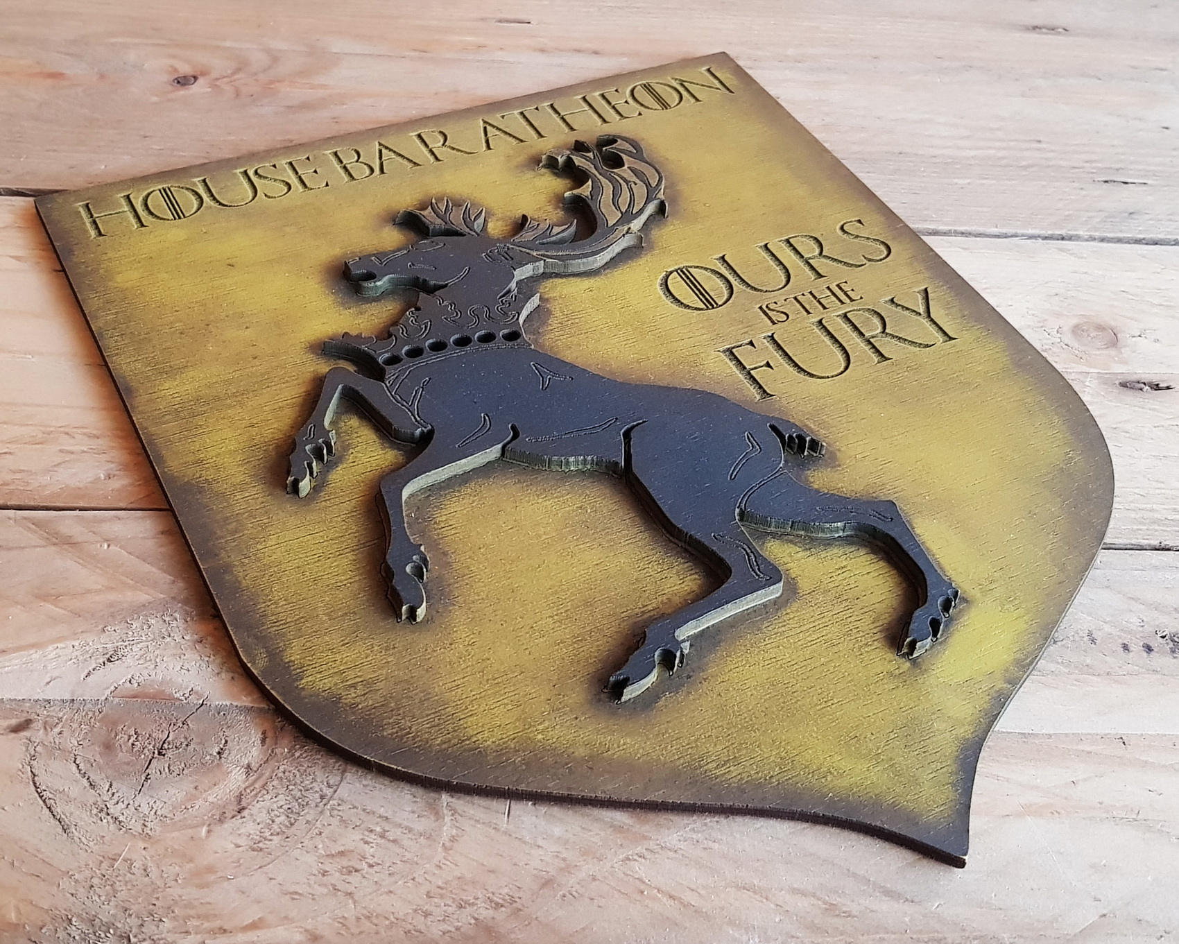 If you are a fan of Games of Thrones, the amazing saga of George R.R. Martin, surely these wood signs will bring you great memories. Place the banner of your favorite house, be it Lannister, Stark, Baratheon or Targaryen. Perhaps you identify yourself more with the Arryn, the Martells or the Tyrell, or you may even be in favor of the faceless man, the Lord of Light or the sword in the darkness that protect The Wall keeps. All the symbols of your favorite sagas can be found in our store. And if not, ask us! We do all kinds of jobs on request.