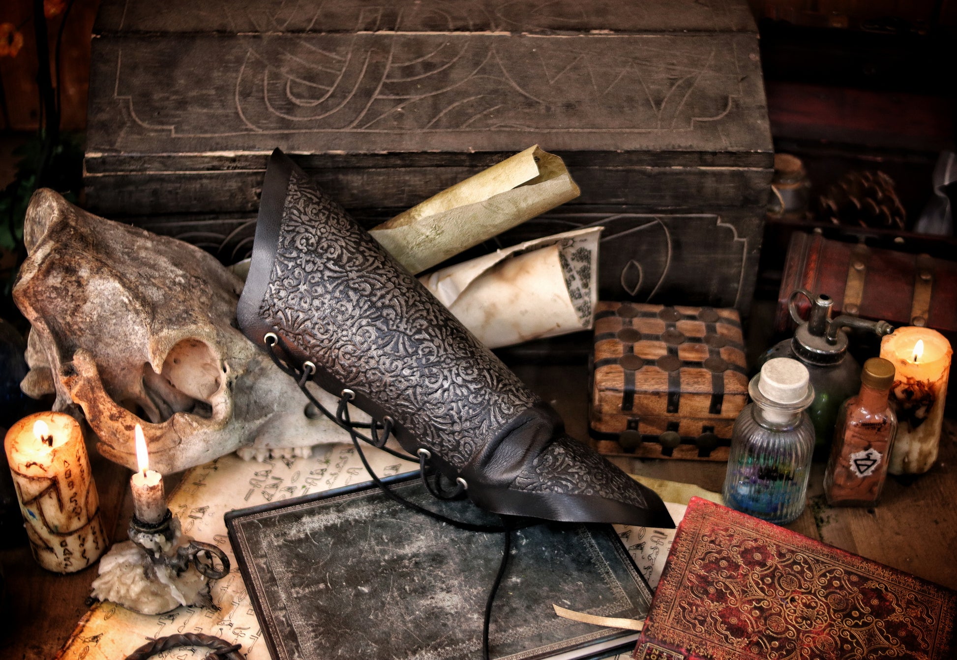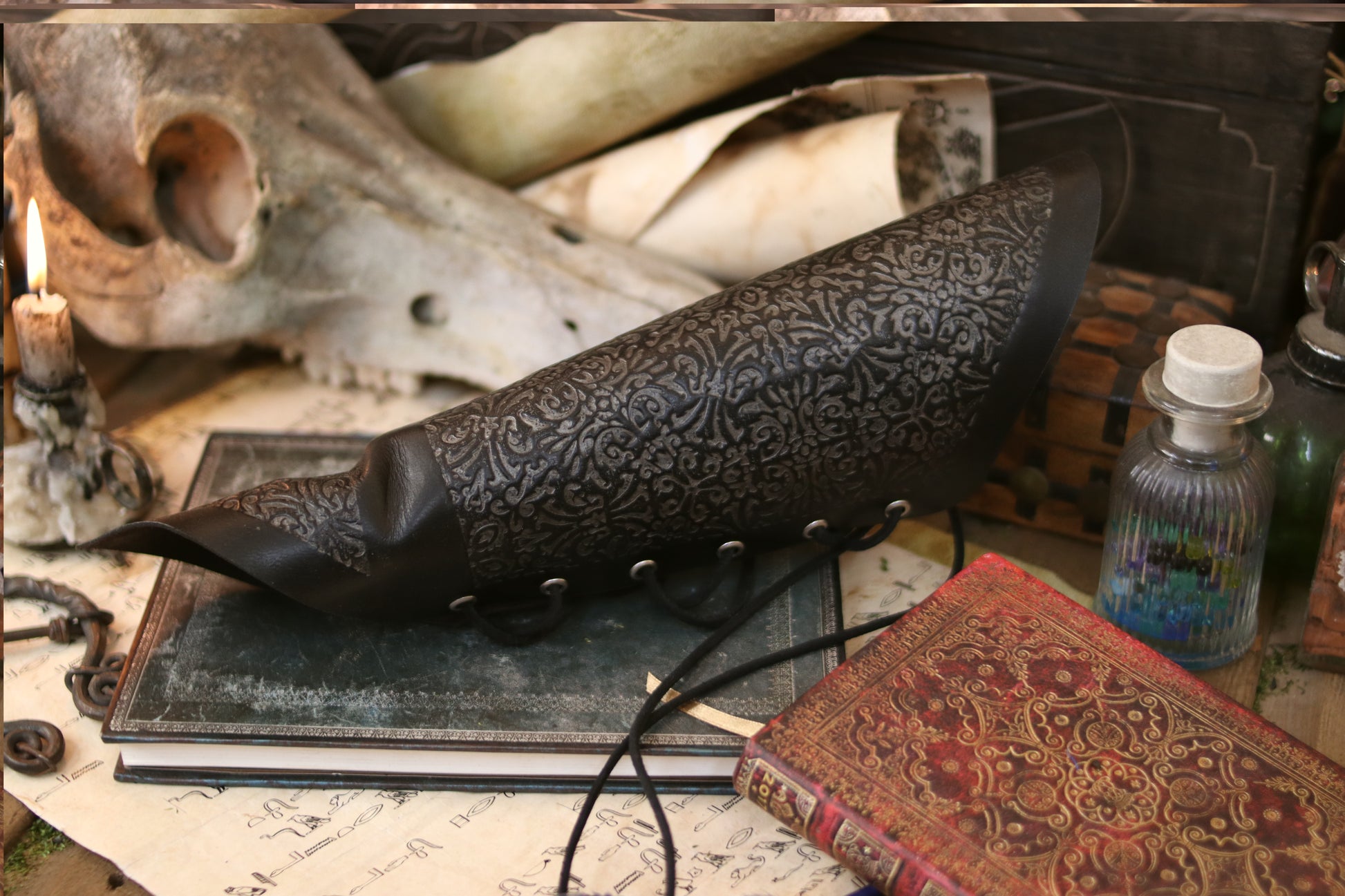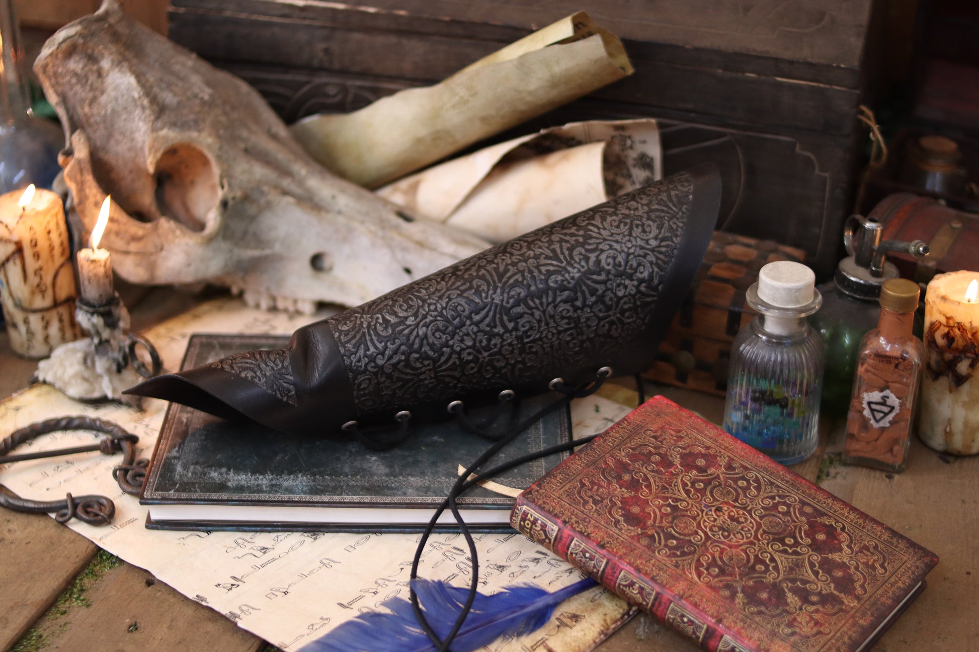 Dive into the mystical realm of wizardry with our Long Leather Bracers – the Enoch Spellbound Sleeve. Embrace the Dark Mark style, designed for witches and wizards seeking a touch of enchantment. Ideal for LARP adventures and those who appreciate witchcraft elegance, but also perfect for witches and wizards in their daily enchantments.