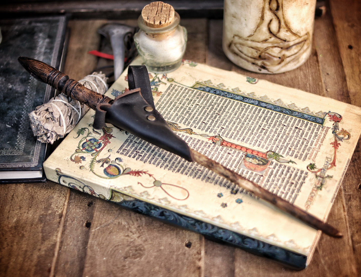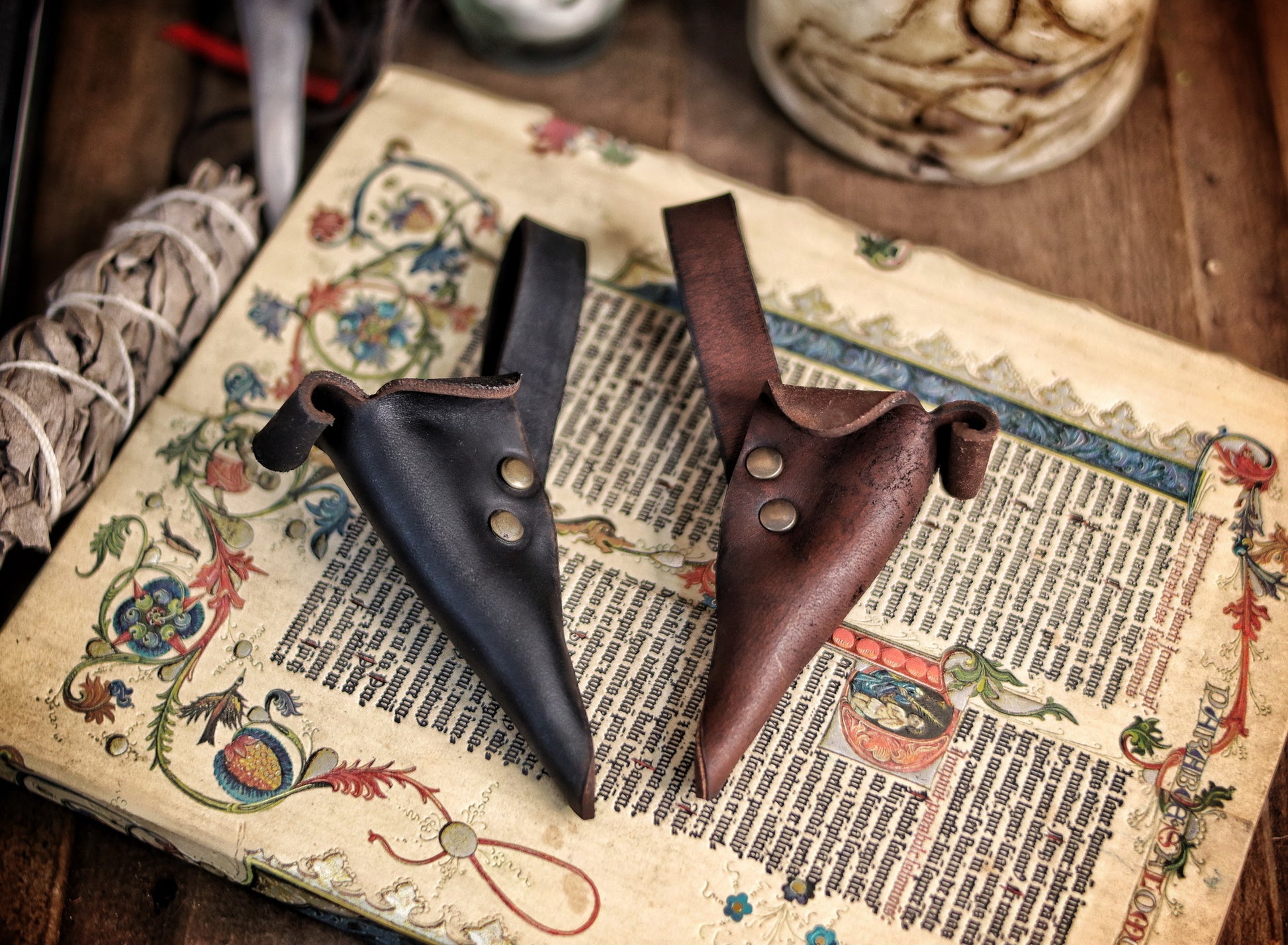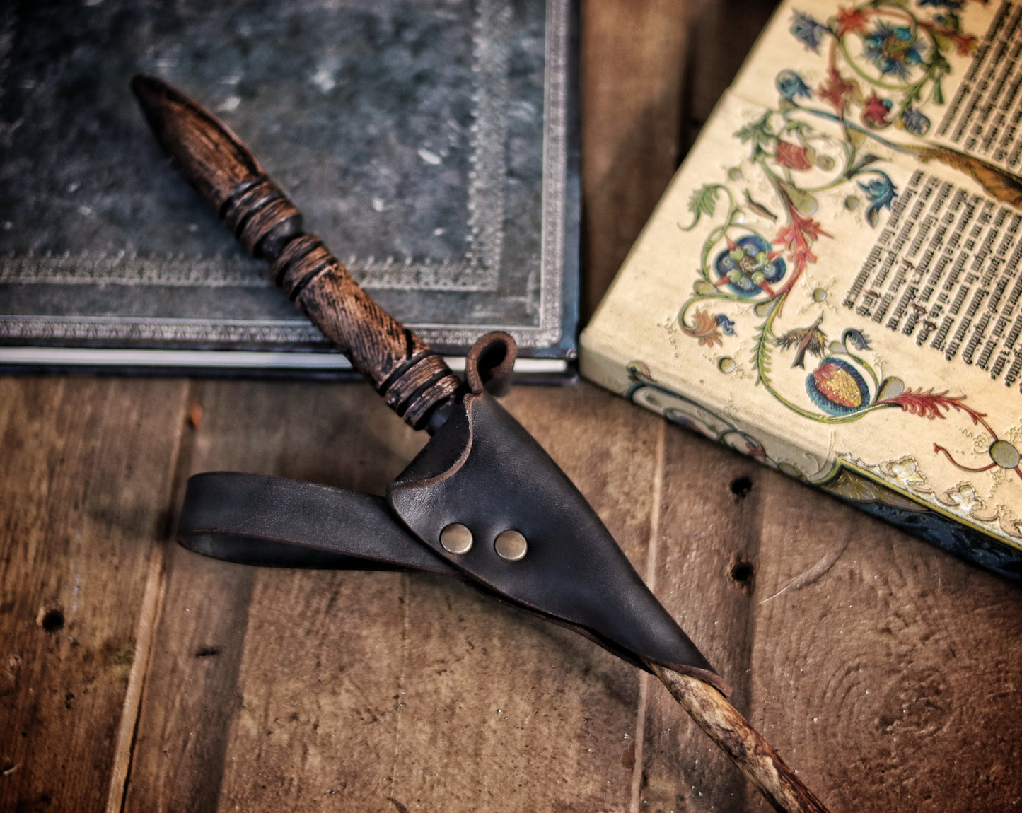 Magic Wand leather Flower Frog Holster to hang from your belt, perfect for wizard cosplay.