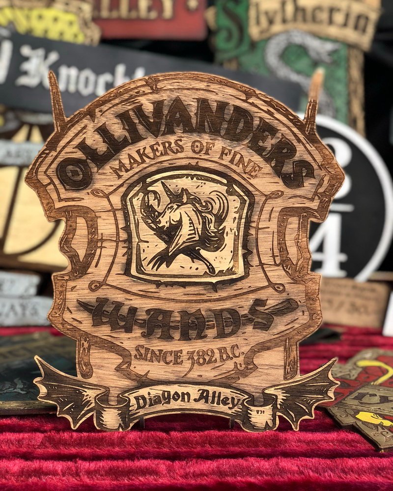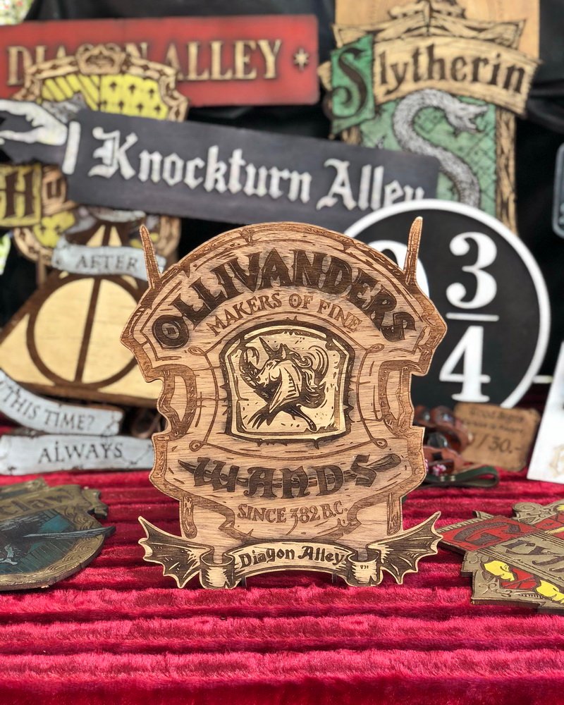 If you are a fan of Harry Potter and the whole saga of J.K. Rowling, surely this wood signs will bring you good memories: Platform 9 ¾, Diagon Alley and Knockturn Alley, The Three Broomsticks, The Leaky Cauldron, the symbols of the Houses, and all those that you want, you can find them in our store.