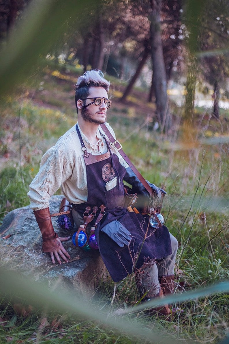 🔍 These alchemist glasses are handcrafted using lightweight wood and transparent methacrylate lenses (not glass). The structure is reinforced with a central metal pin and adjustable leather cords, allowing a secure fit on most faces. Each pair is varnished by hand to achieve that worn, mystical look that fits perfectly into a medieval accessories kit or fantasy glasses collection.