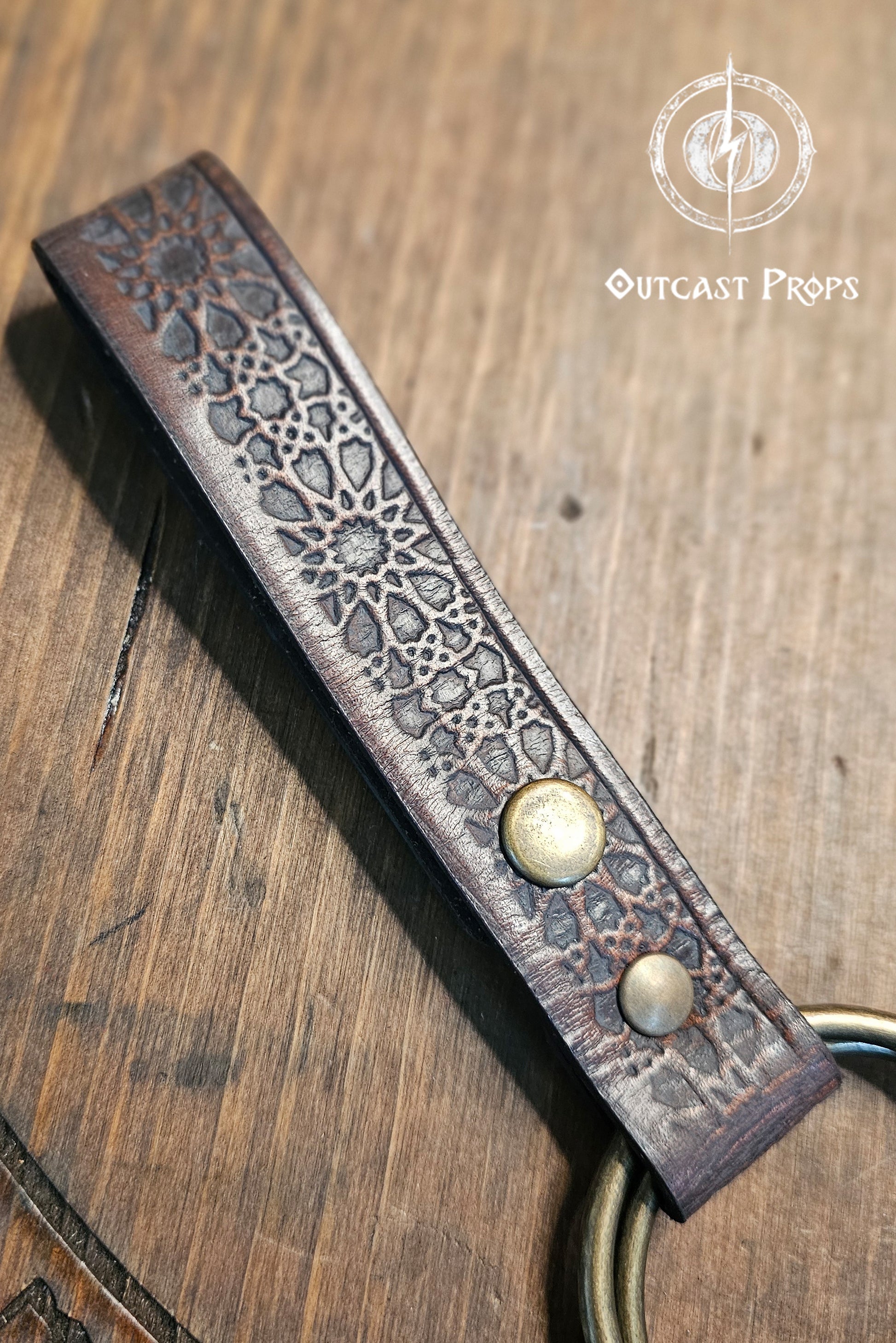 Add a touch of exotic flair to your fantasy outfit with our Persian Skirt Hike — These arabic leather skirt hikes are the perfect accessory to bring elegance and functionality to your LARP, renfaire, or cosplay costume. Inspired by the intricate motifs of the Alhambra and Persian medina patterns, they add a unique decorative and cultural element to any belt.