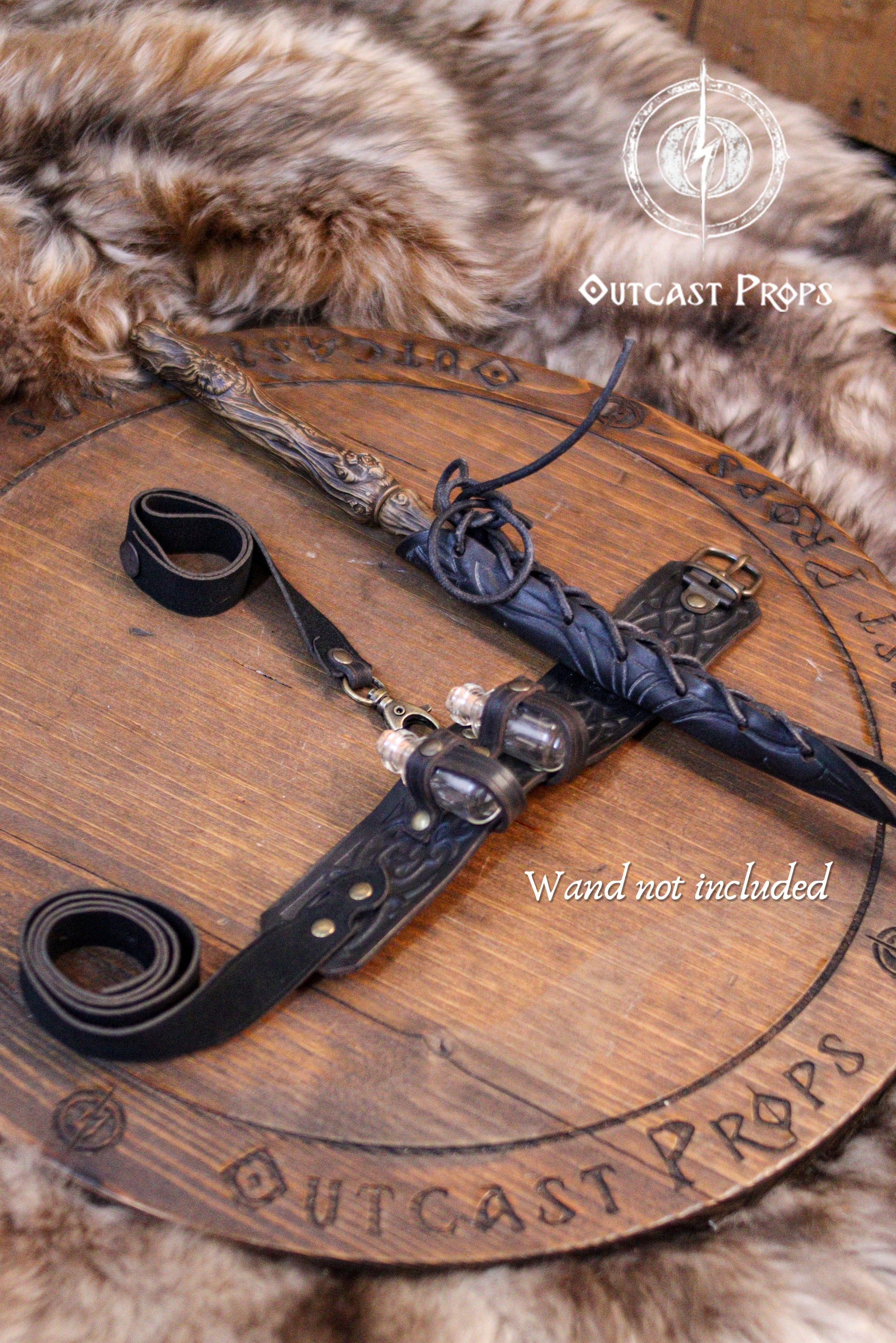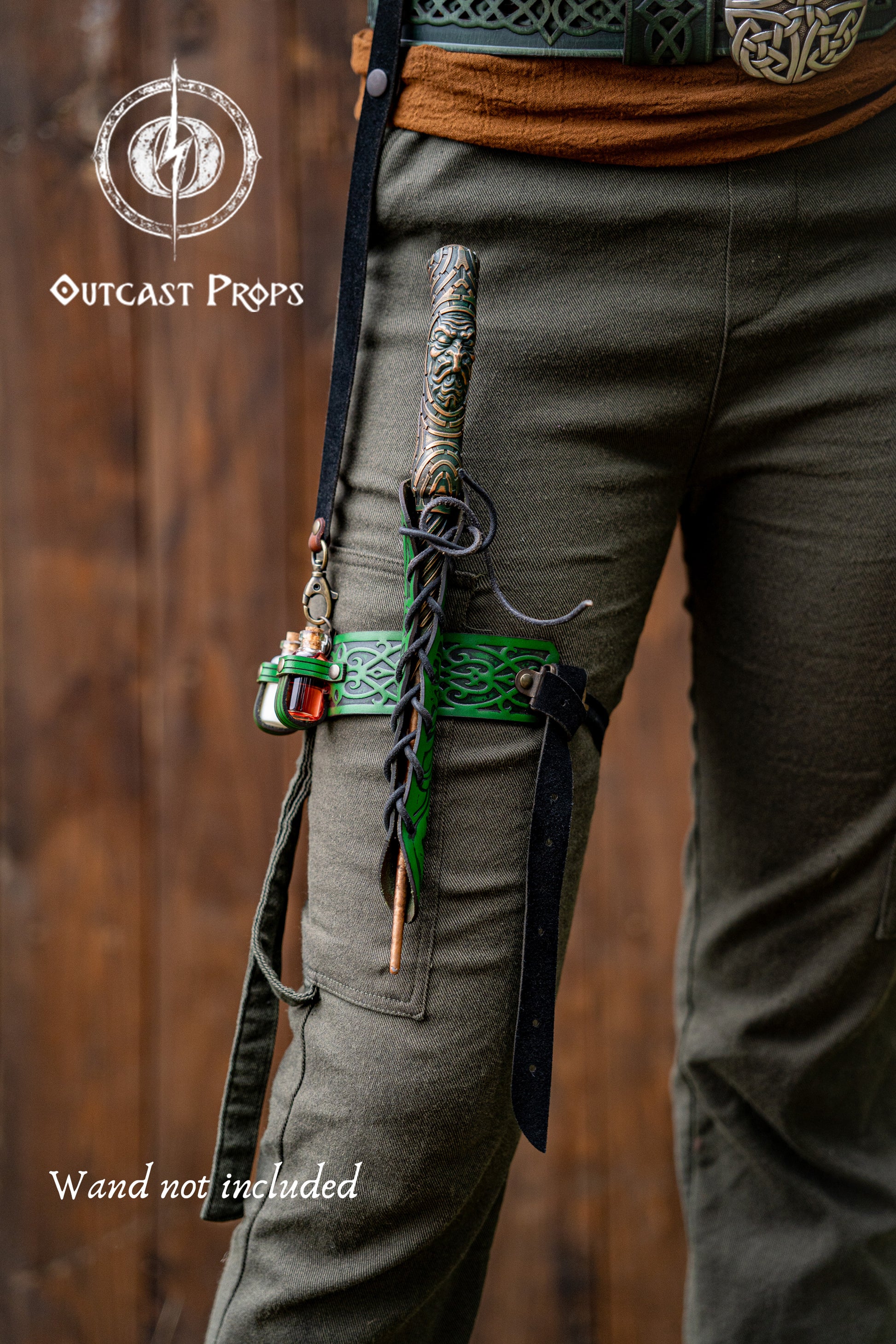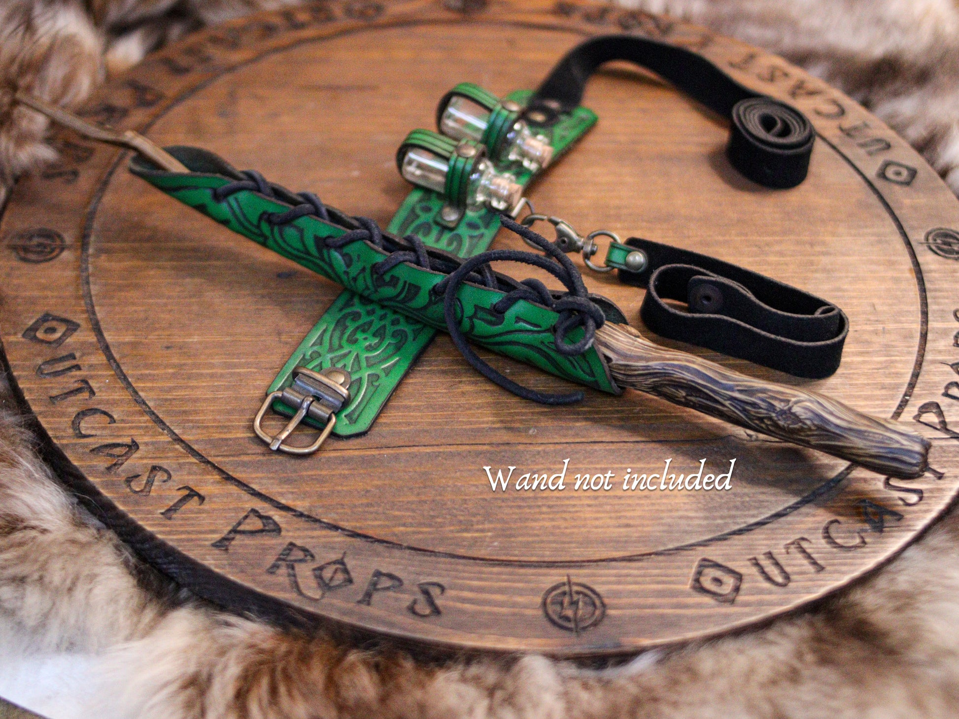 Ornate wand garter holster wizard wand holster witch wand holster magic wand holster leather thigh wand holster larp wand holster cosplay