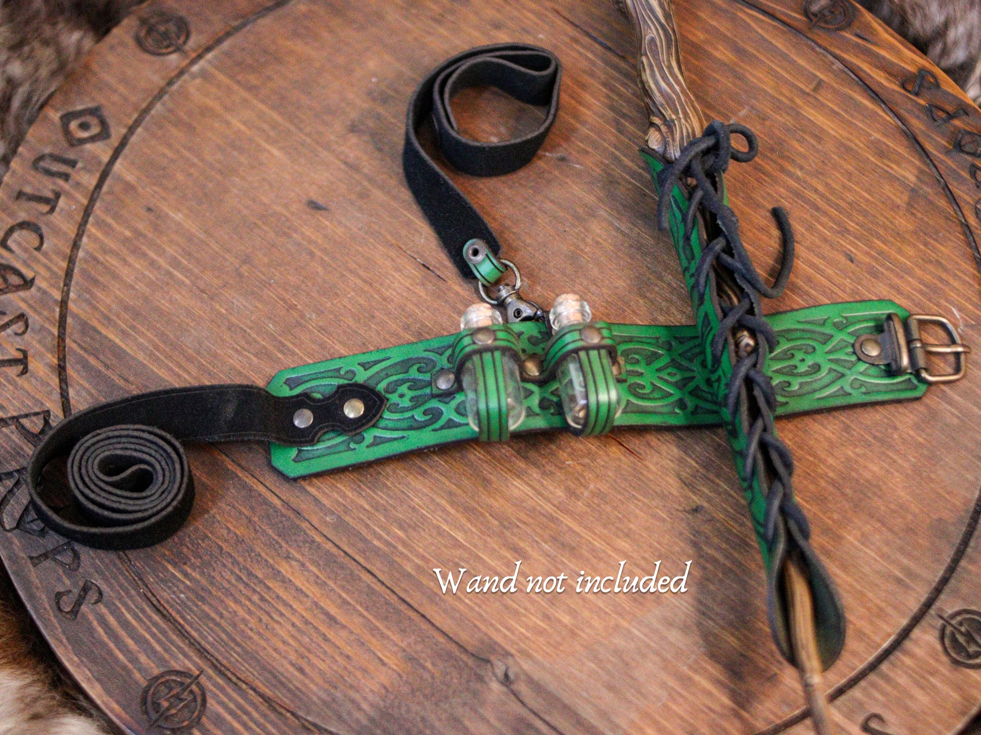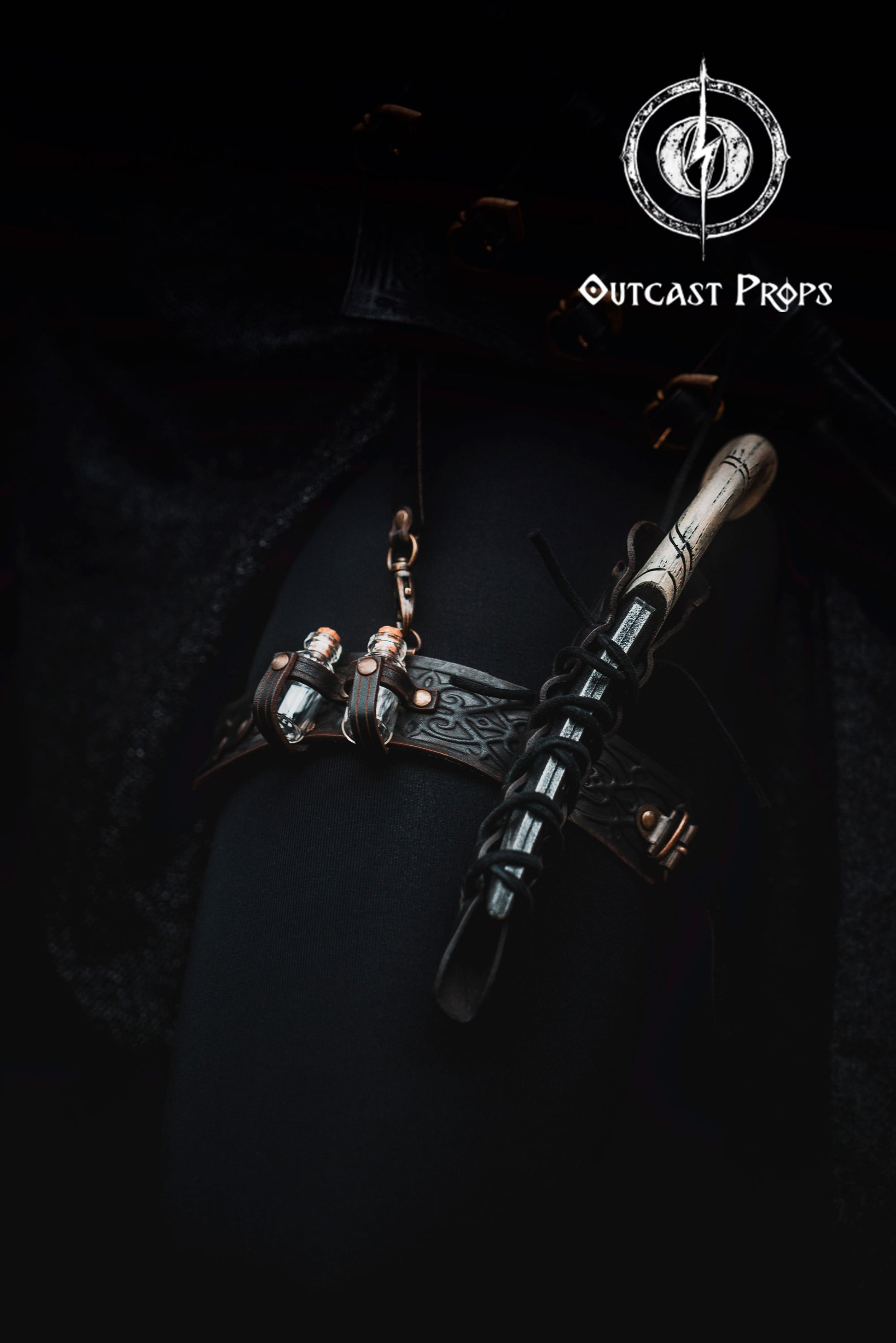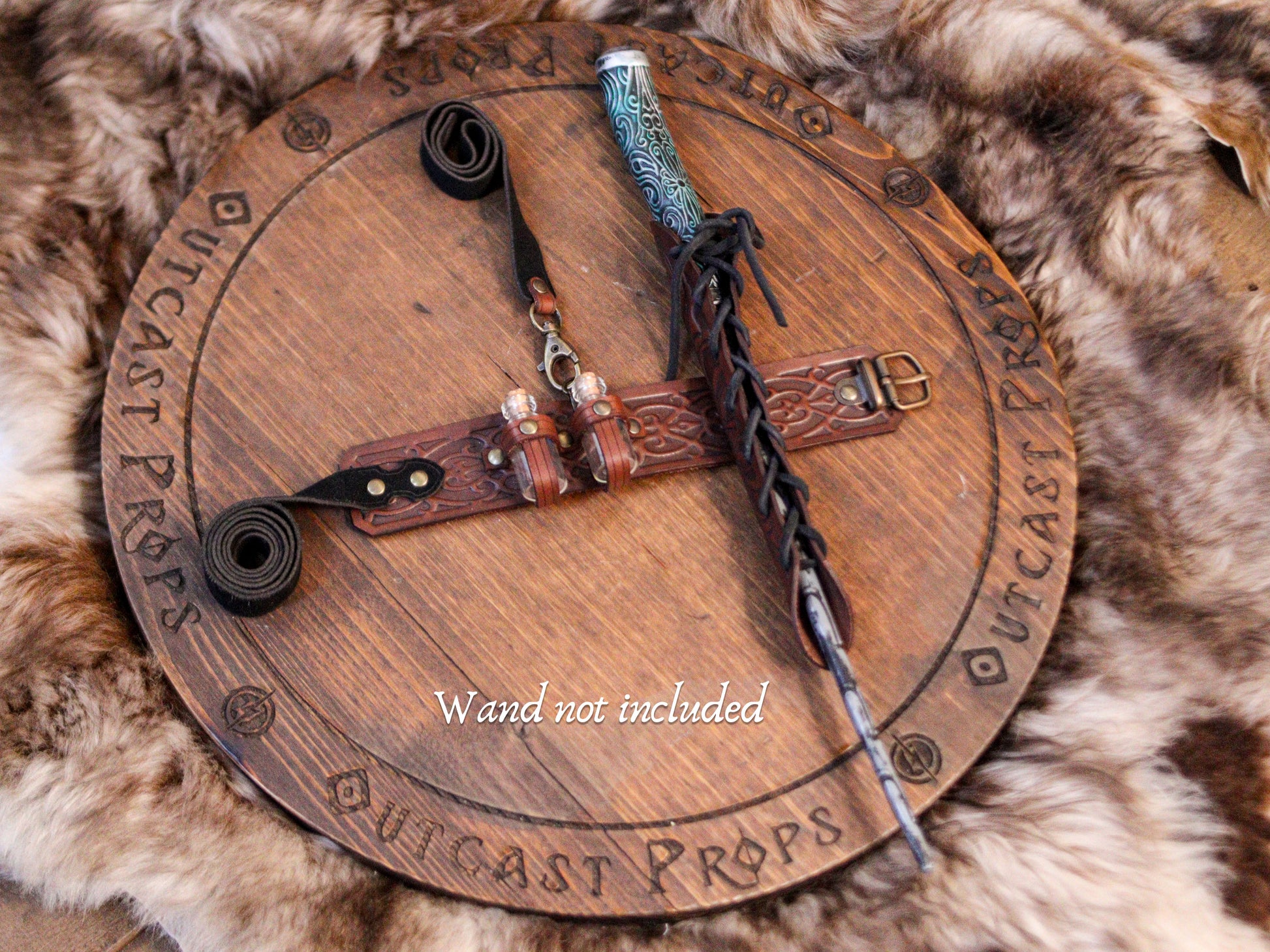 Ornate wand garter holster wizard wand holster witch wand holster magic wand holster leather thigh wand holster larp wand holster cosplay