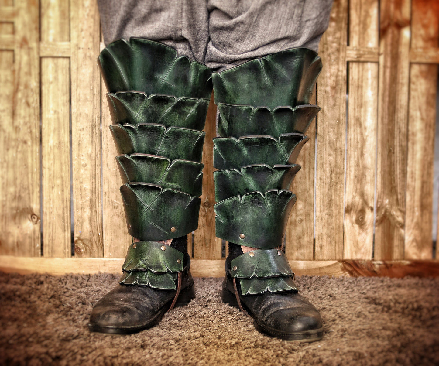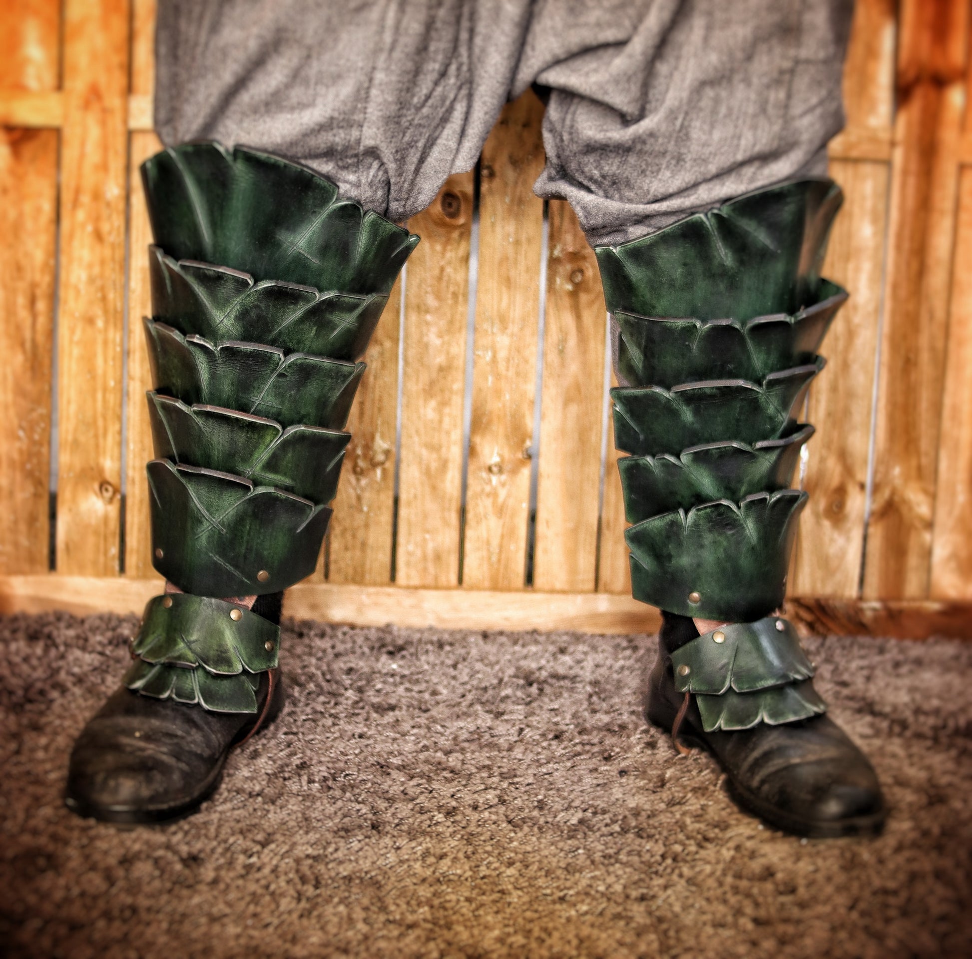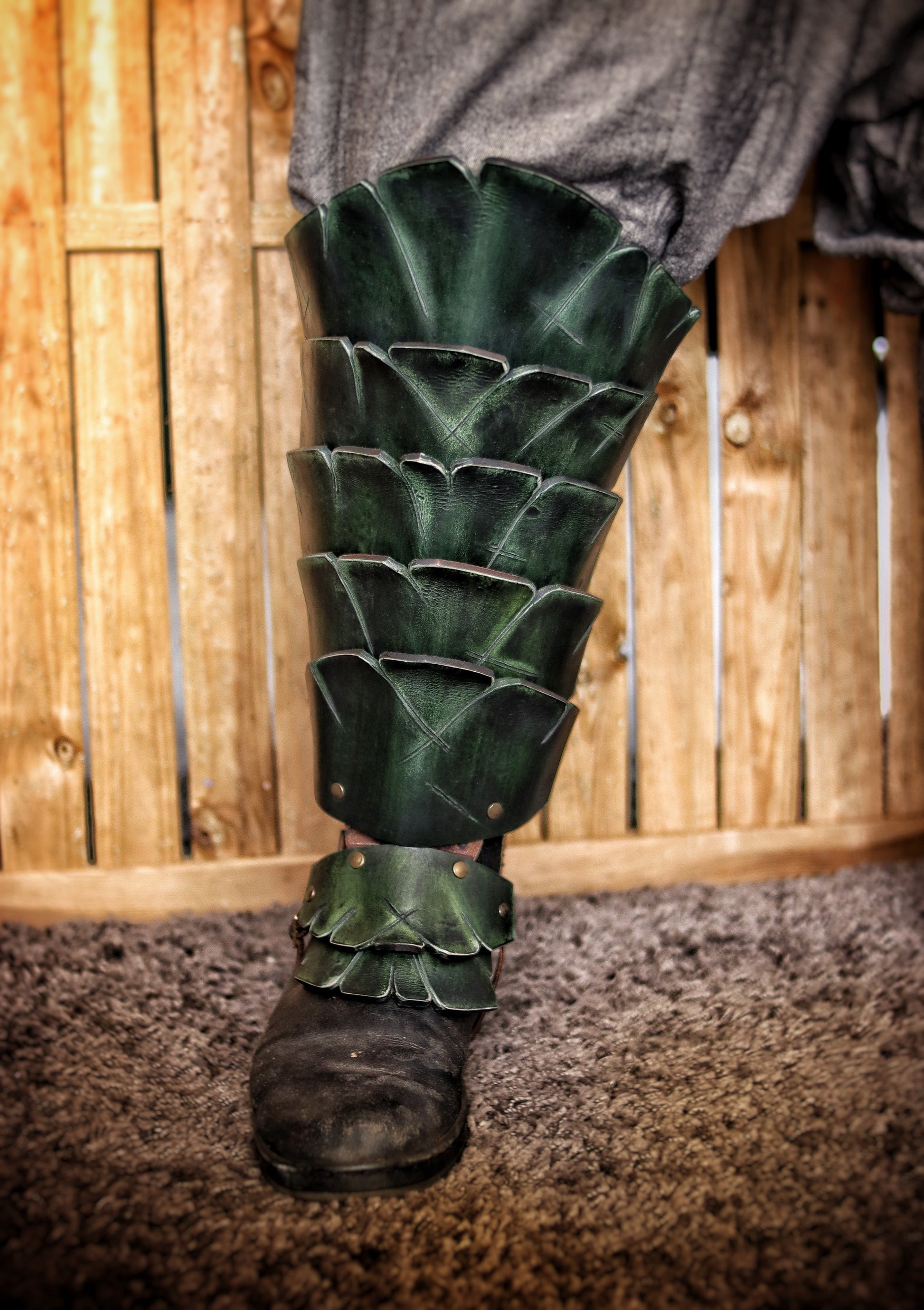 It doesn't matter if you are a ranger, forest creature, explorer, warrior or monster hunter. This greaves has a great personality and will undoubtedly be an essential piece to customize your equipment. Made hig quality a very sturdy leather, but designed in a way to be really comfortable to wear for a long time.