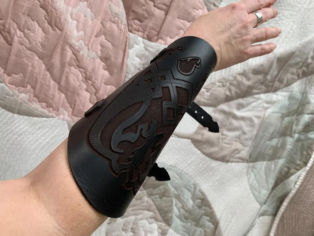 Rohirrim armband to protect the wrist and forearm, for archery arm guard or sword or ax fighting.