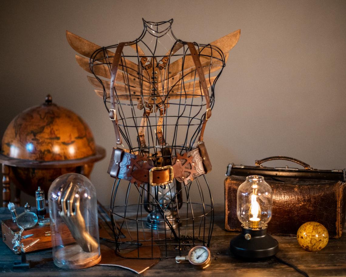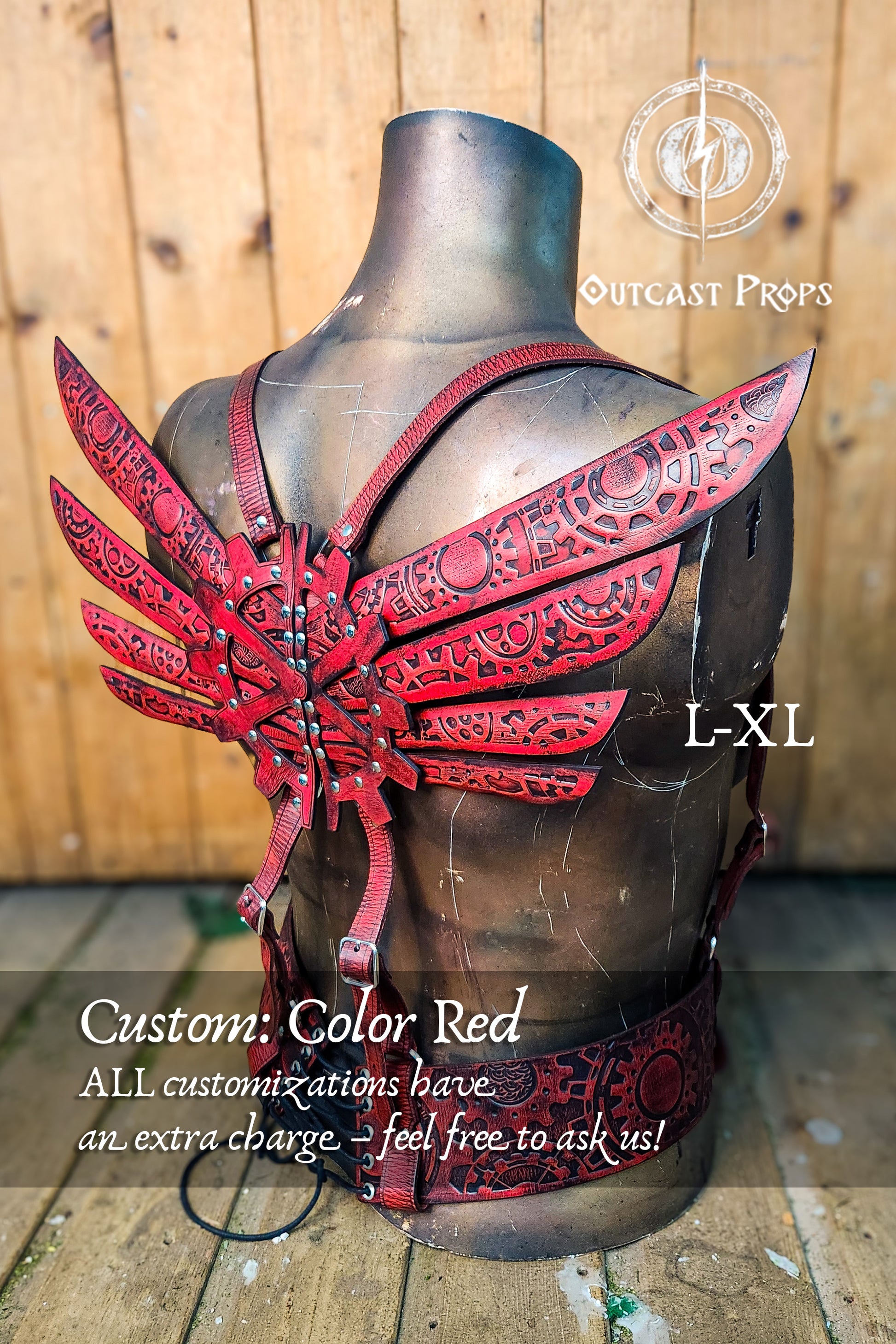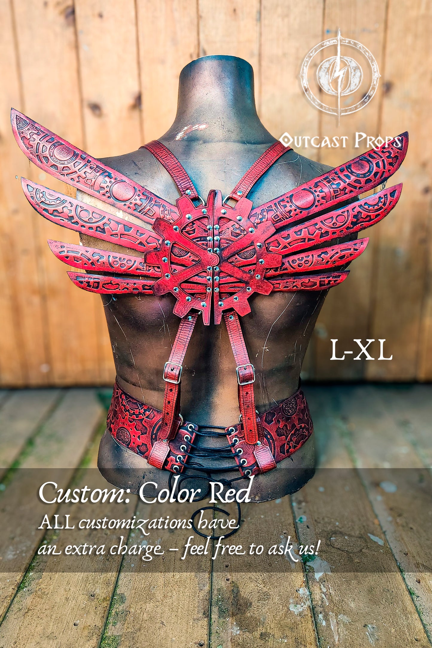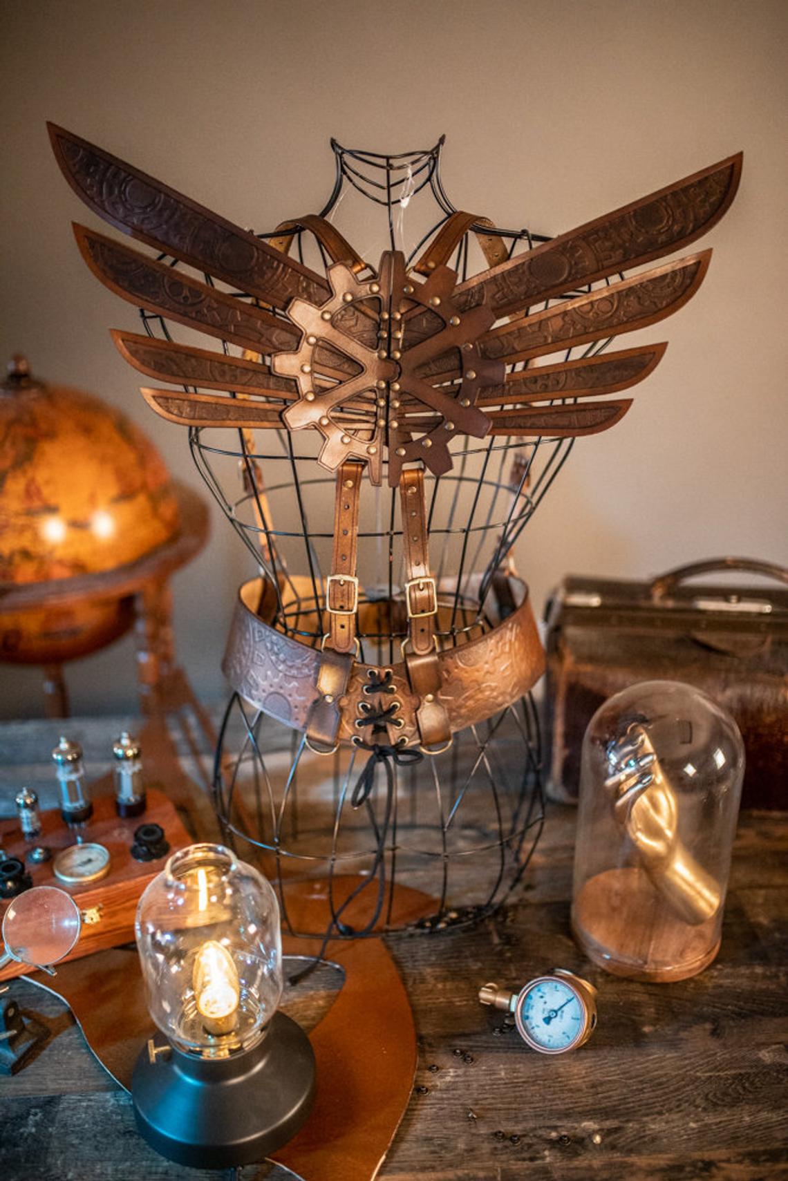 Our steampunk wings are a piece of craftsmanship. Made with vegetable tanned cow leather, slightly hardened and hand-dyed.