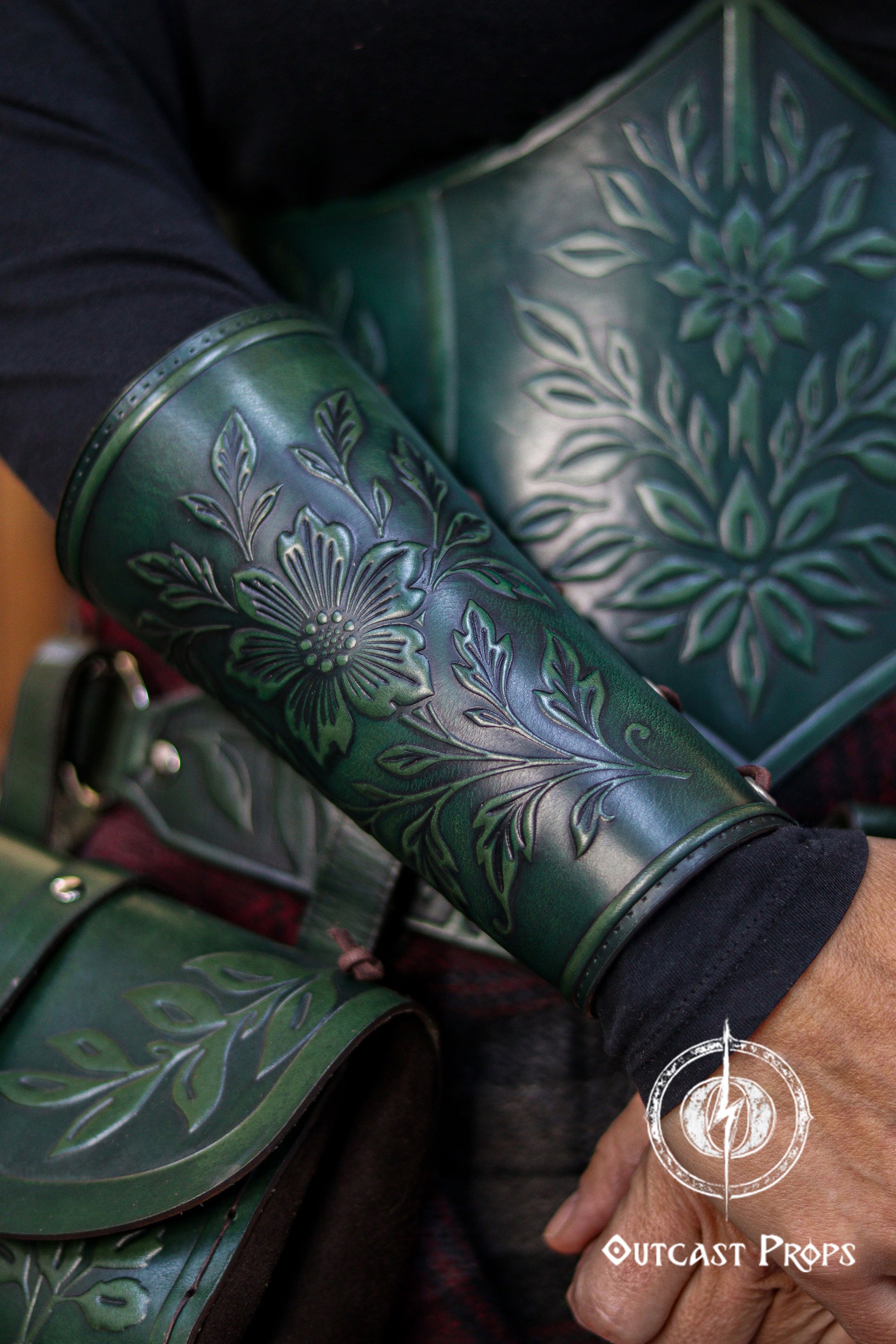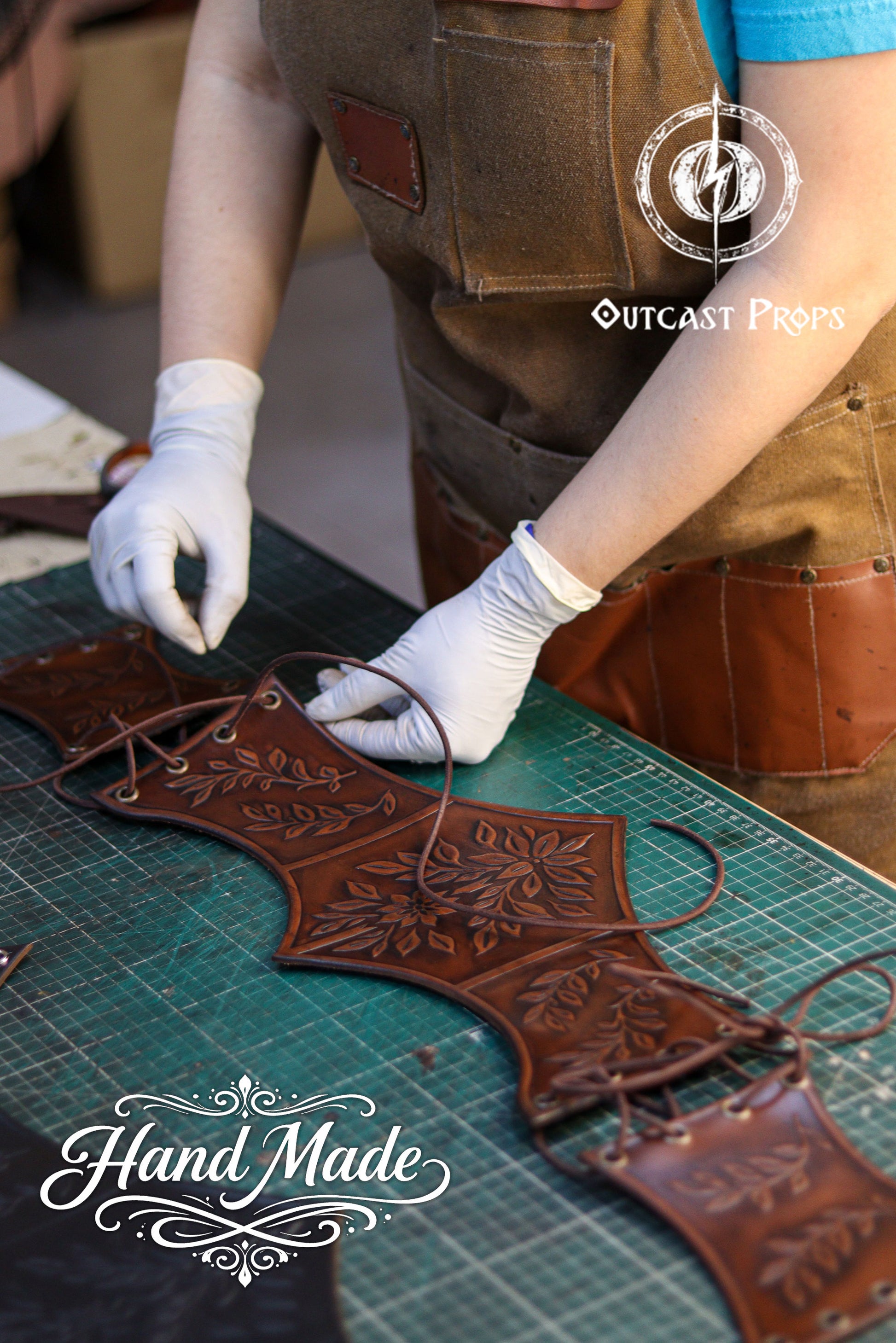 Crafted from full grain, premium vegetable-tanned leather, this underbust corset blends durability with refined artisan detail. The floral embossing is highlighted by hand using natural pigments, then finished with Outcast Props’ unique aging techniques and epic painting to achieve depth, character and a historical aesthetic. No buckles are used, ensuring a soft and elegant silhouette. Every piece is fully handcrafted, making each corset one of a kind.