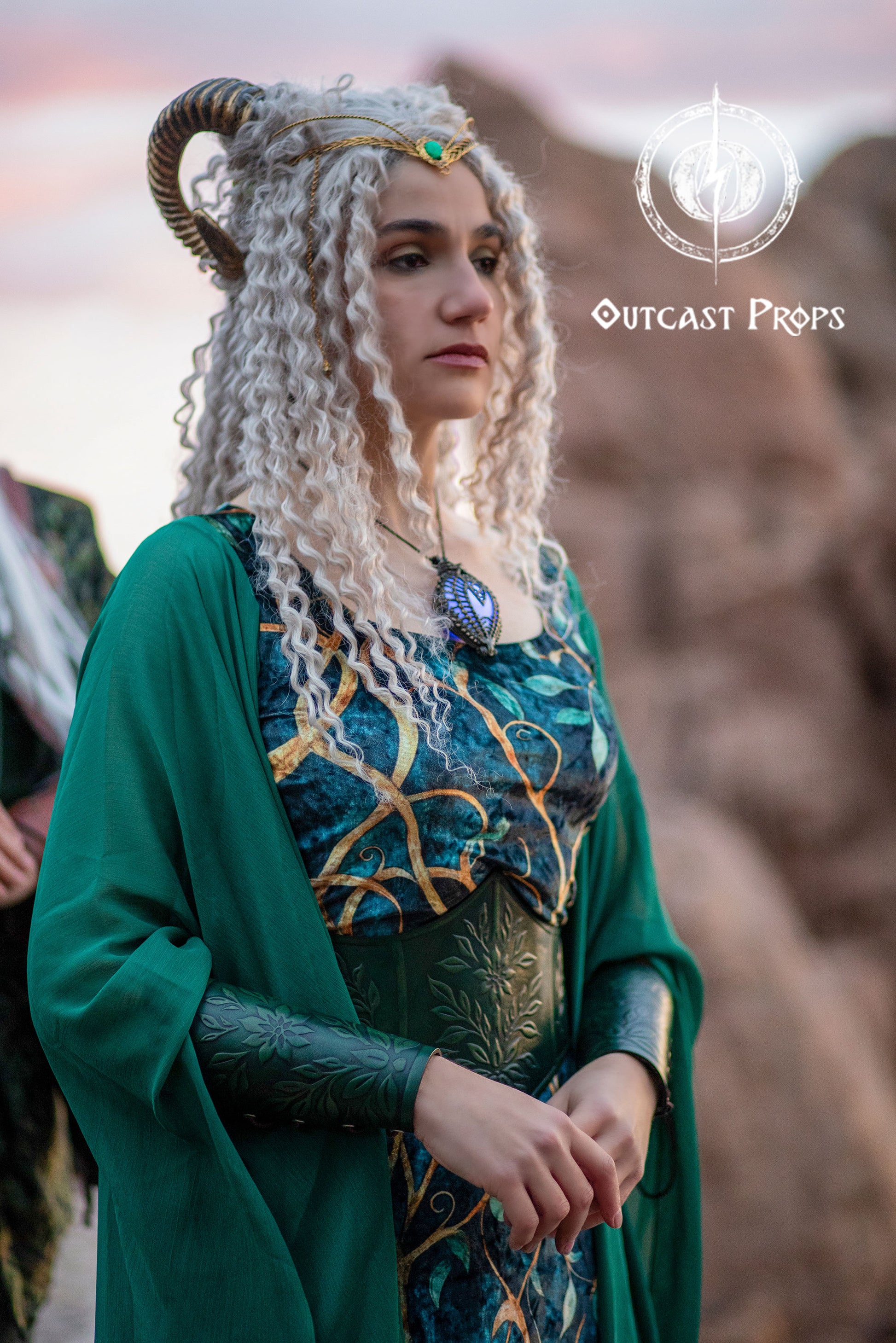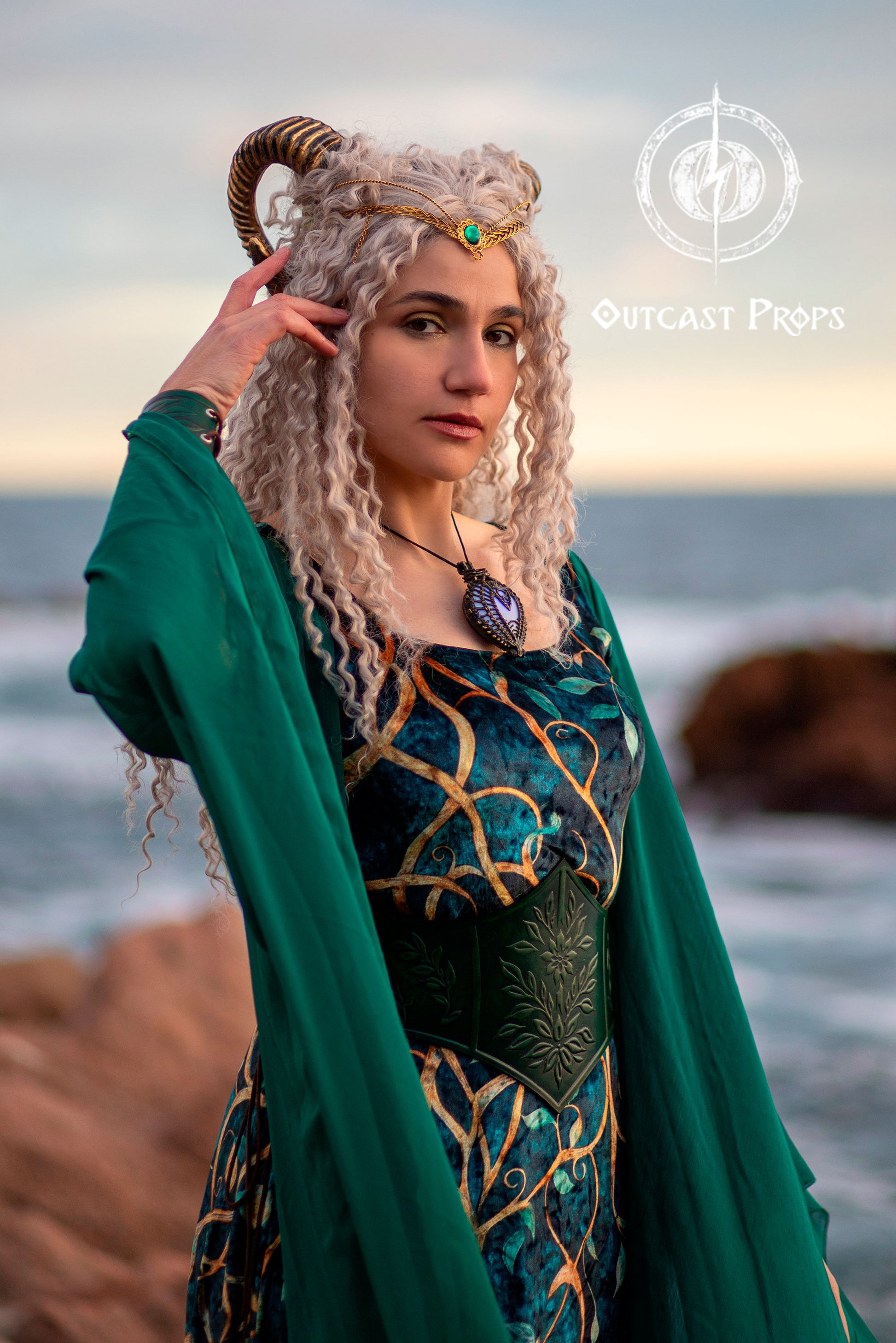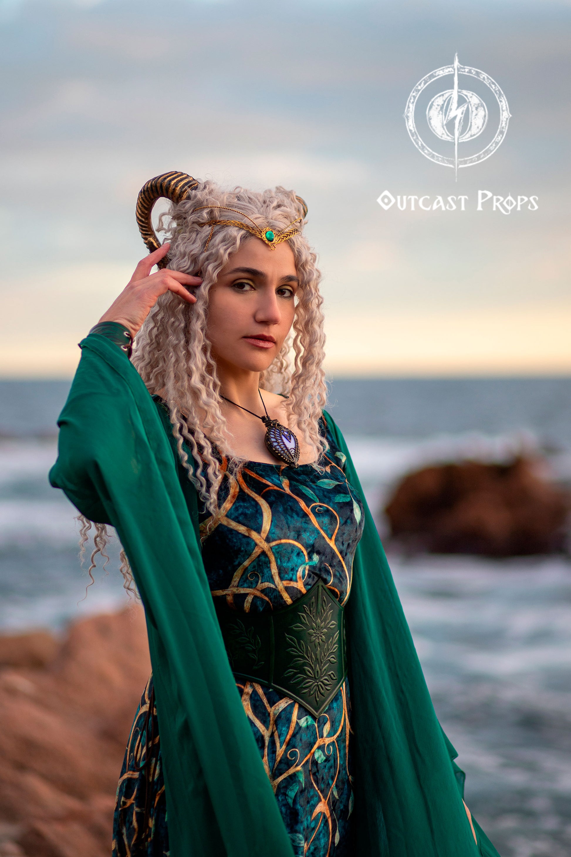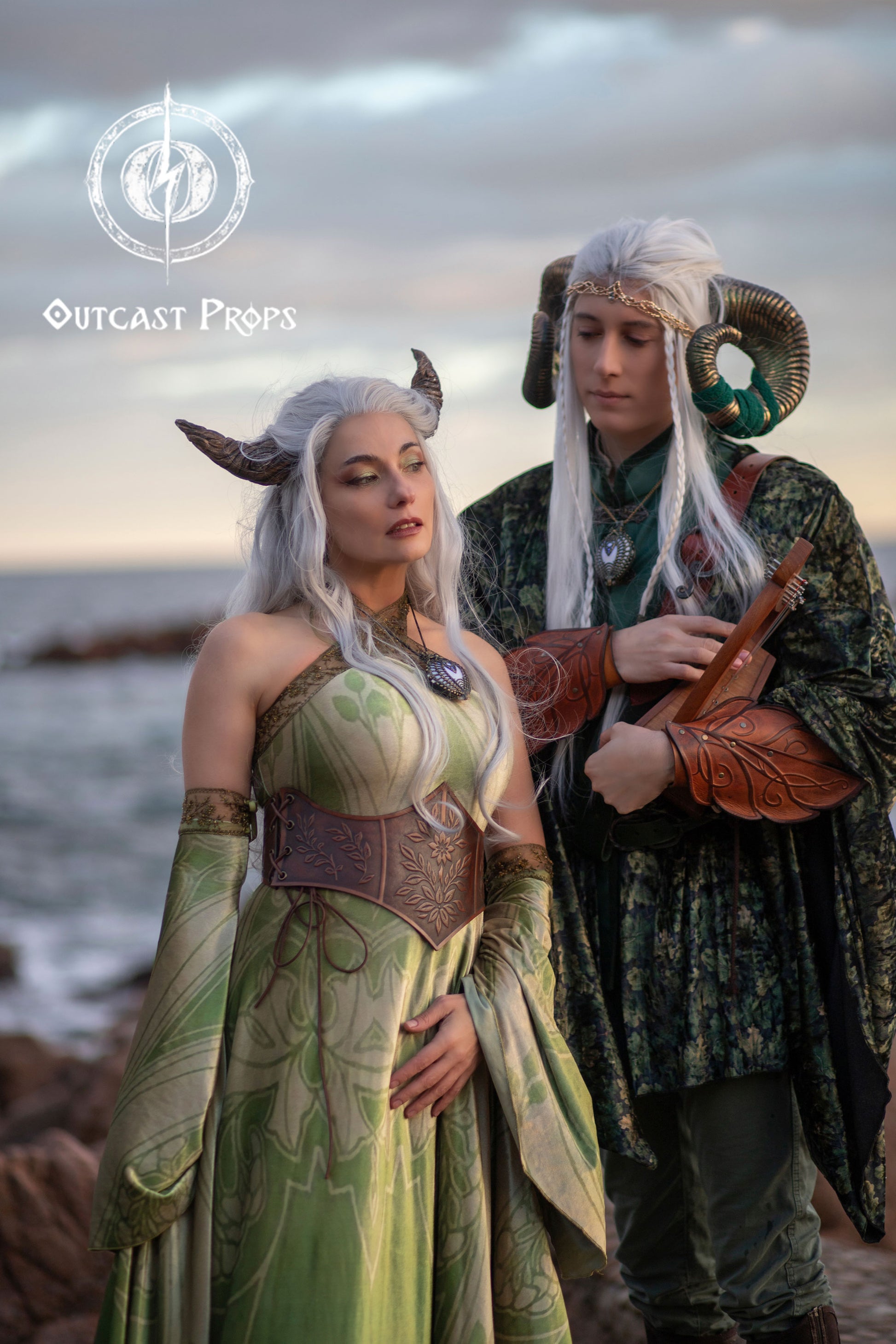 A beautifully shaped underbust corset belt designed to flatter the figure, refine the waistline, and enhance the bust with effortless elegance. Inspired by elven grace, herbalist attire, wandering witches, noblewomen of the court, and characters who blend beauty with strength, this piece adapts seamlessly to skirts, dresses, trousers or layered fantasy outfits. Made from premium vegetable-tanned leather and sculpted with hand-tooled floral motifs, it creates a silhouette that feels both powerful and enchanting. Treated with Outcast Props’ unique aging techniques and epic painting, every corset achieves a cinematic finish worthy of Renaissance faires, LARP adventures, historical reenactment and fantasy cosplay.