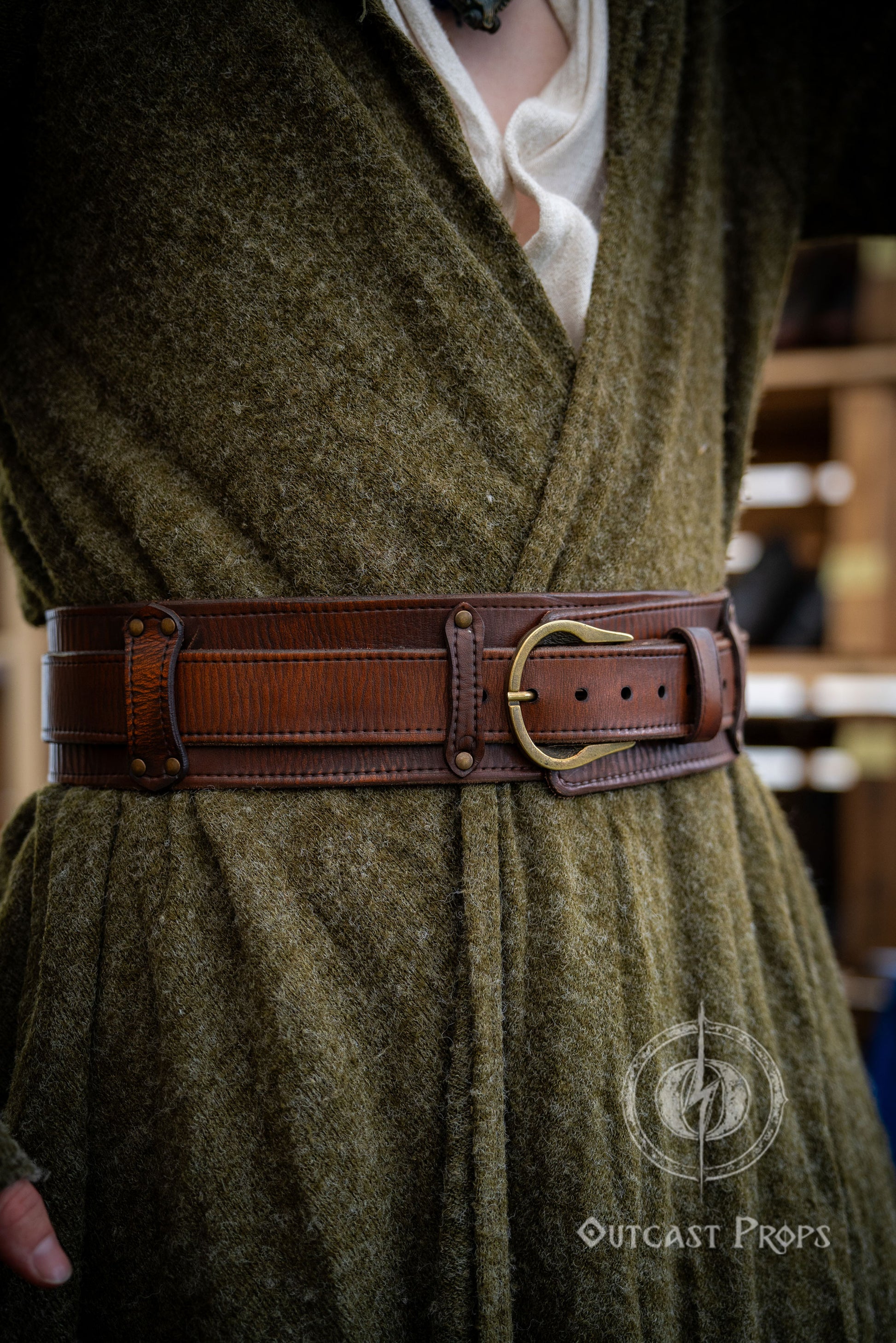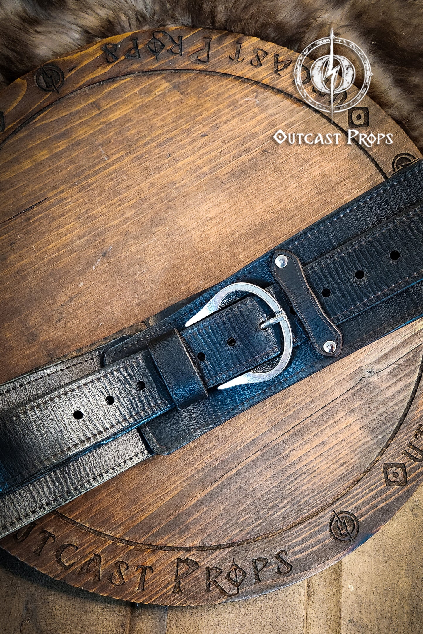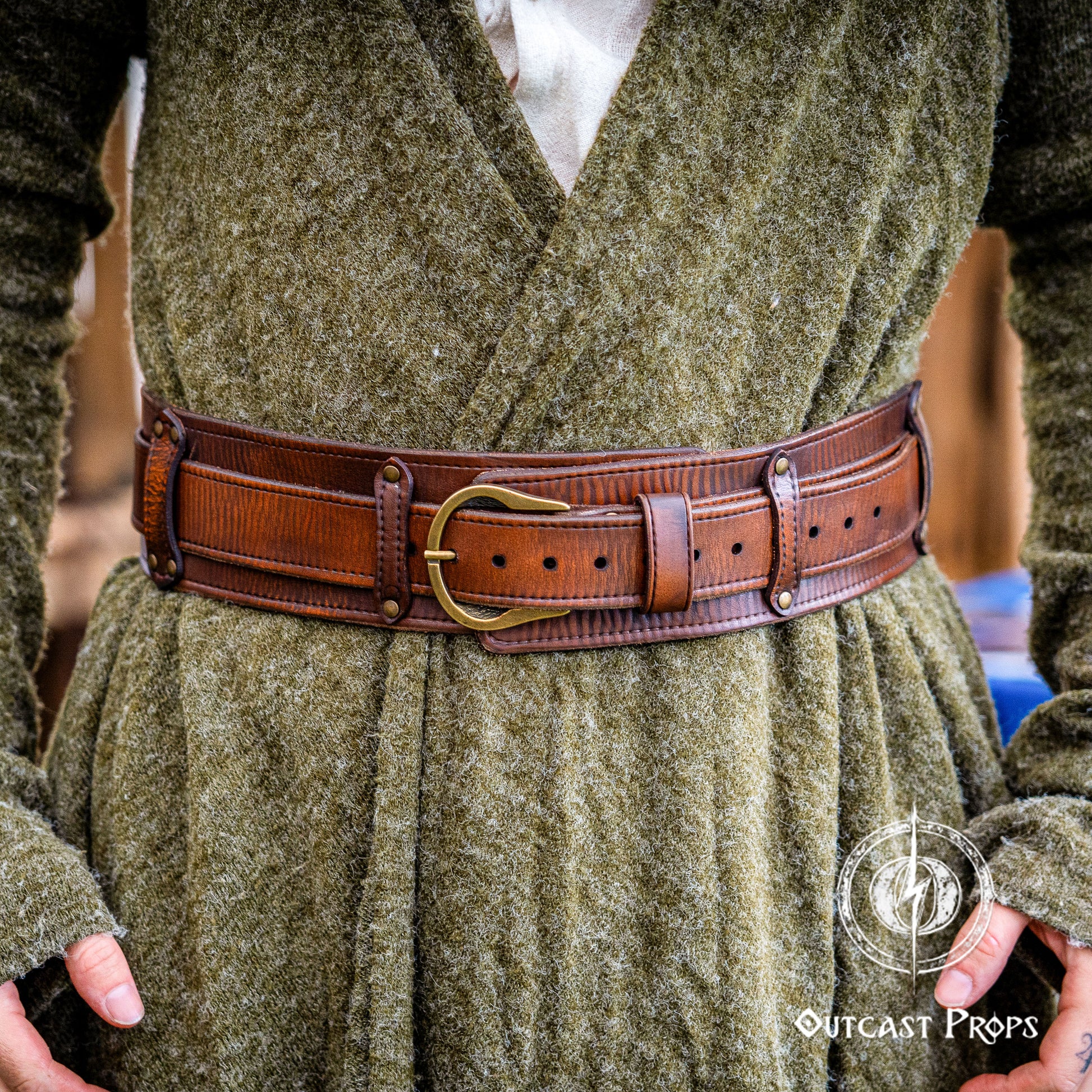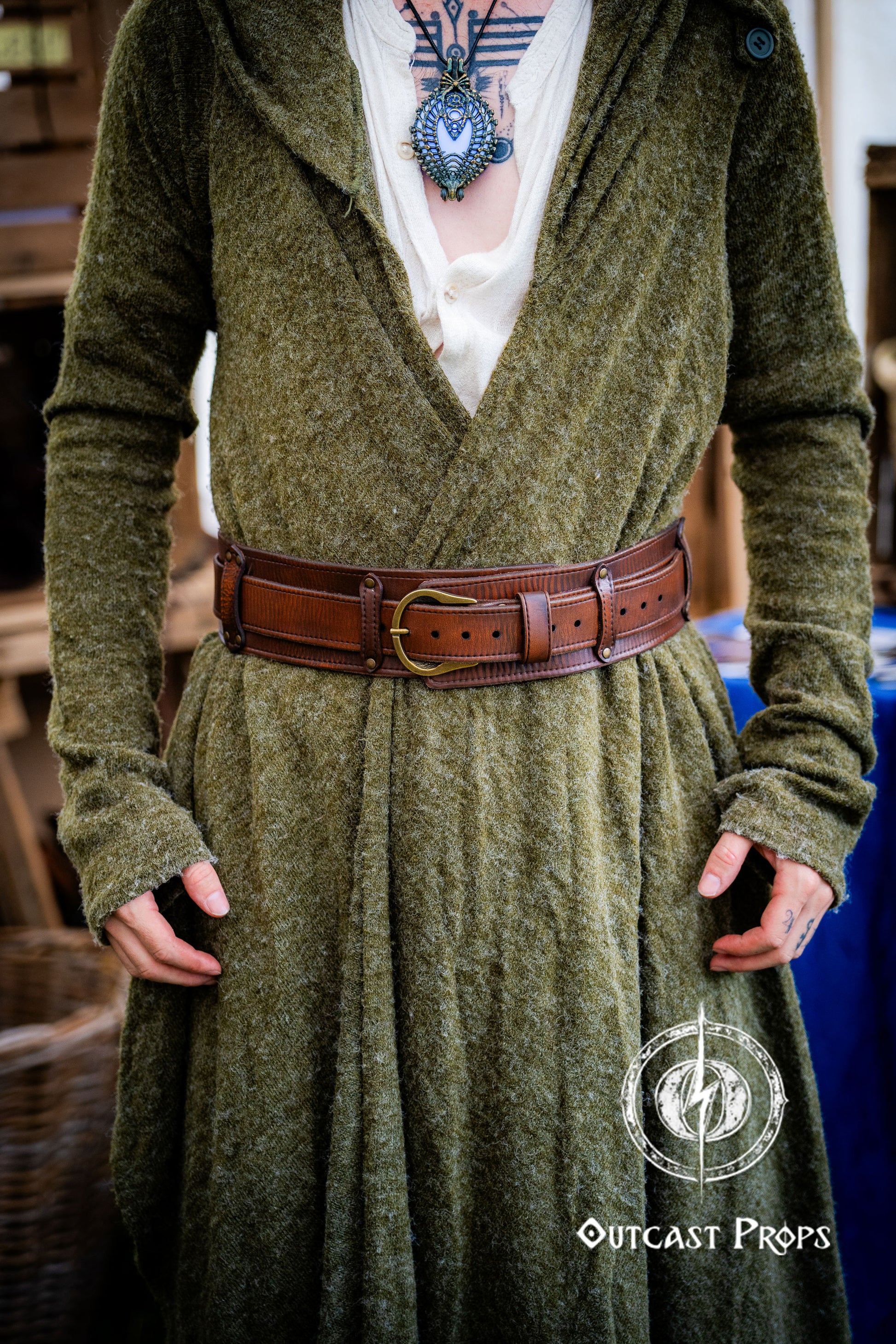 Awaken your character with this handcrafted leather belt, a piece that combines everyday functionality with the elegance of fantasy gear. The Wanderer Belt is designed for versatility: wear it as part of your daily outfit or let it become the finishing touch for your character at LARP, Renaissance fairs or cosplay events. Its modular structure allows you to use it with or without the wide frame, offering both a subtle, refined silhouette and a bold, heroic look. The exceptional craftsmanship is evident in every detail – from the flawless edges and elegant buckle to the deep textures and cinematic finishes achieved through unique aging techniques and epic painting. This is not just a belt, it is an accessory that adapts to nobles, rangers, travelers and adventurers alike, made from the highest quality vegetable-tanned leather and built to last a lifetime.