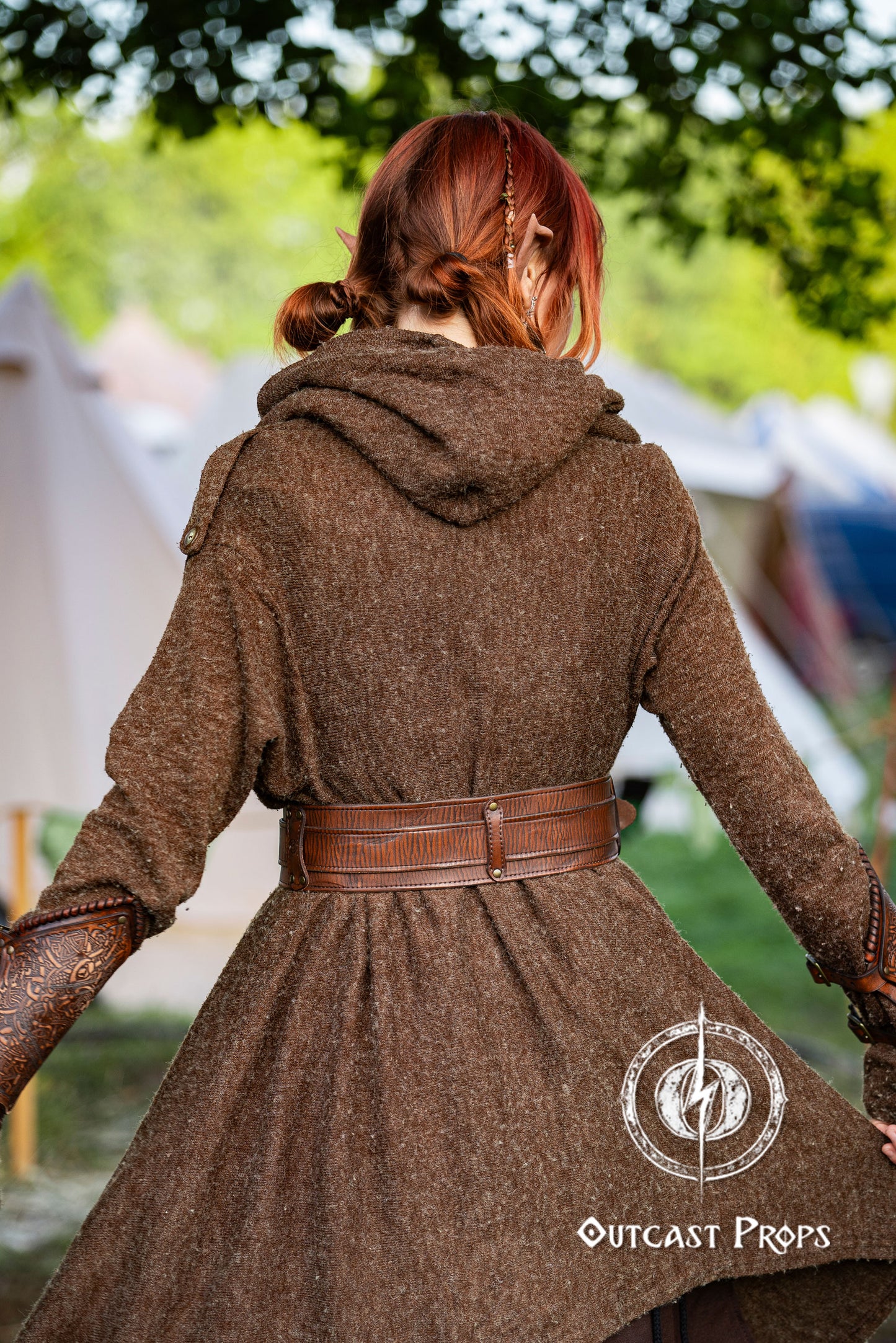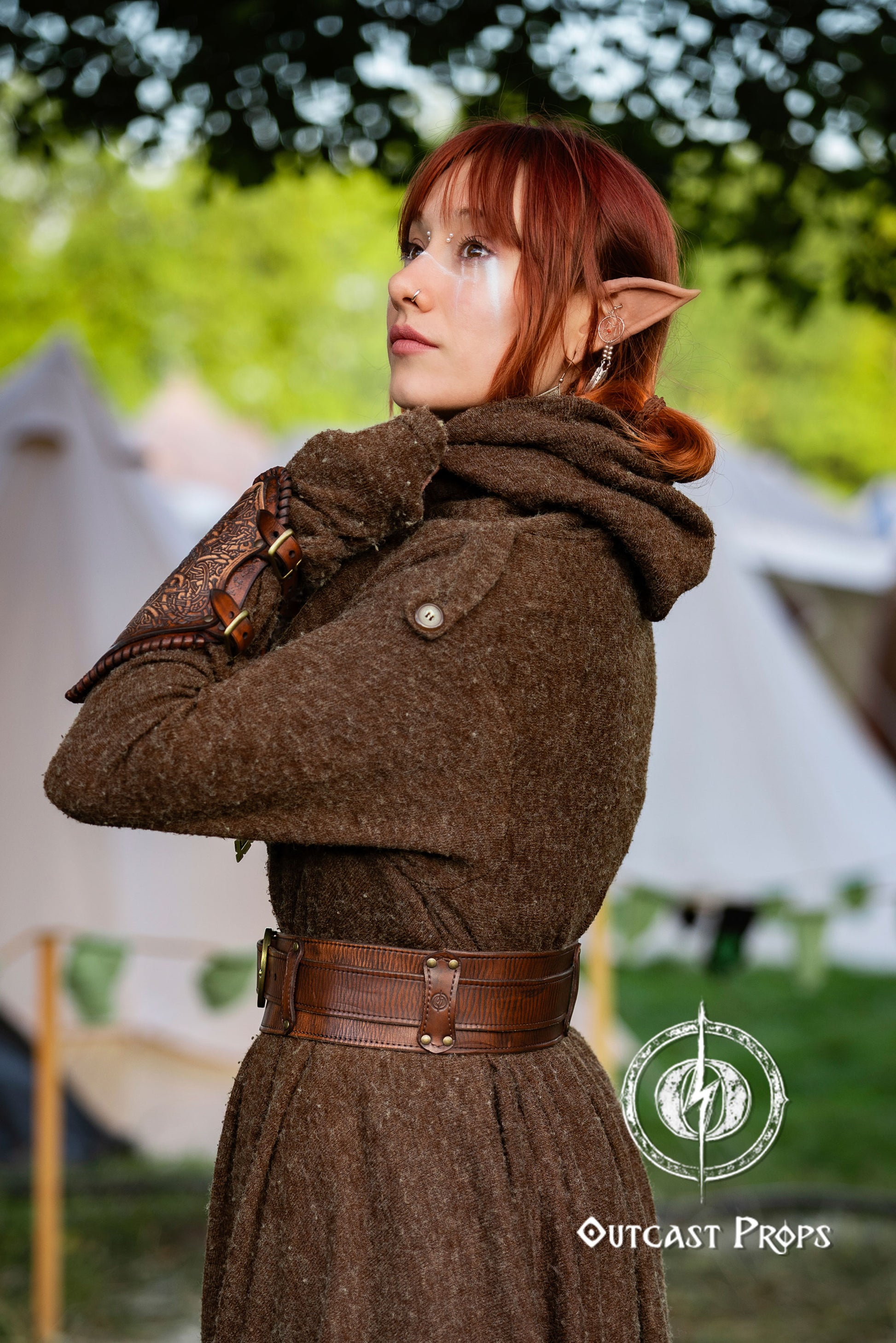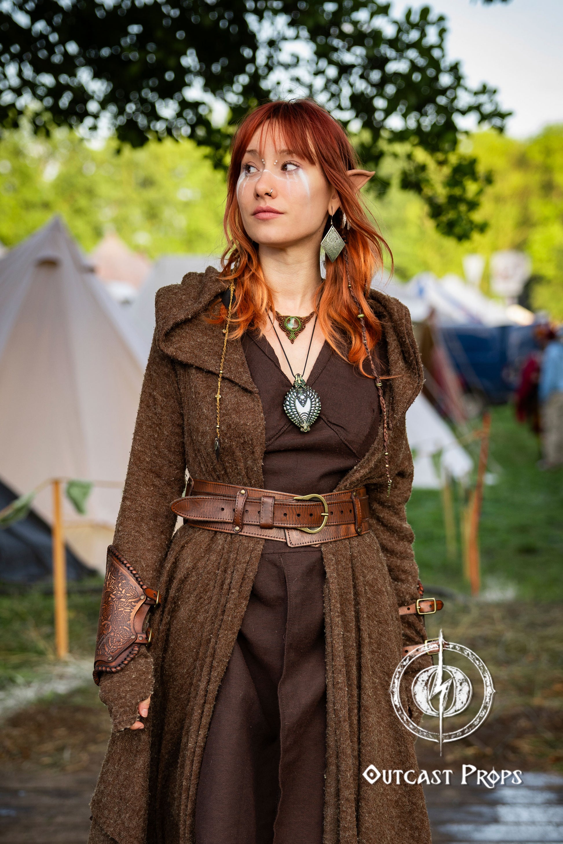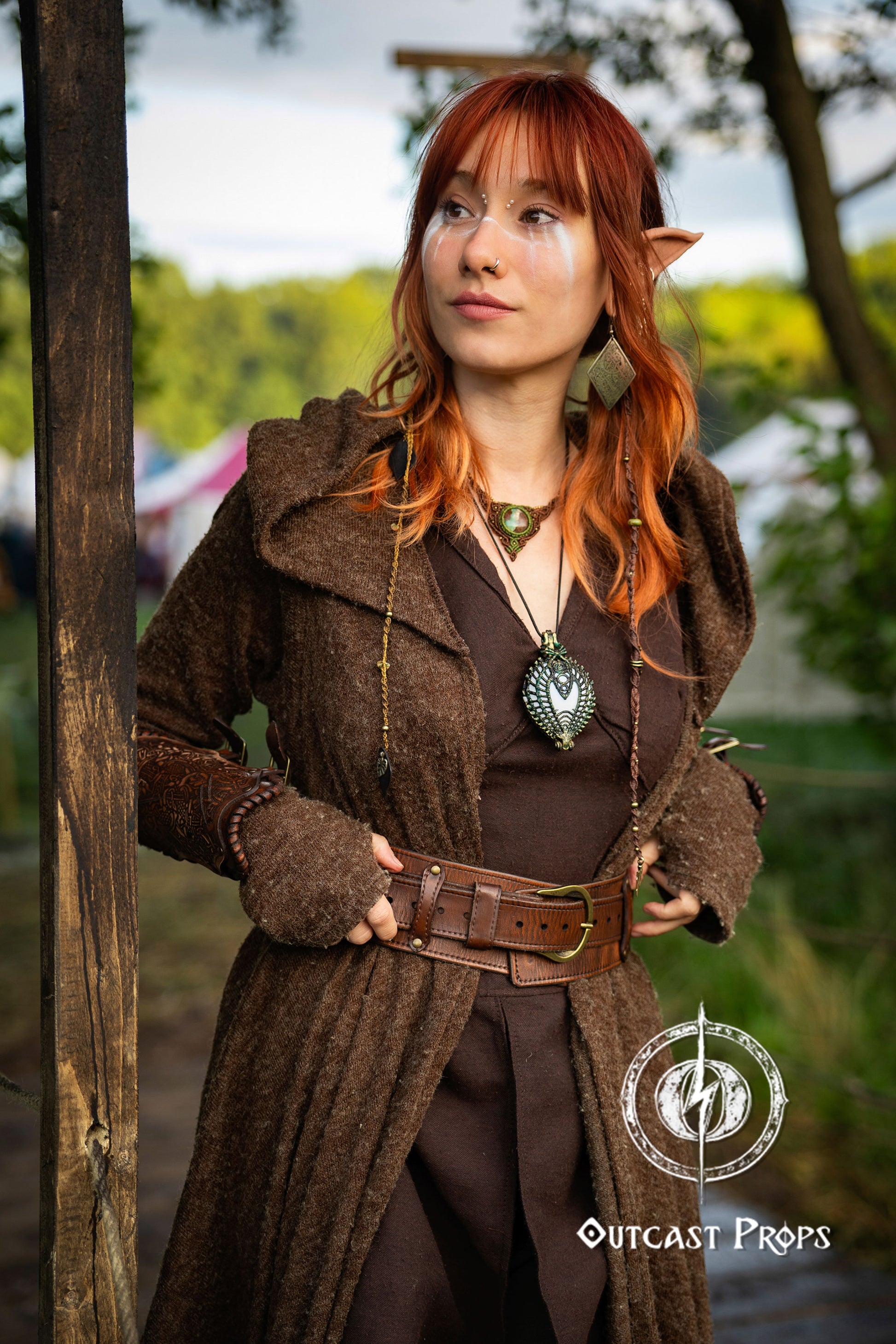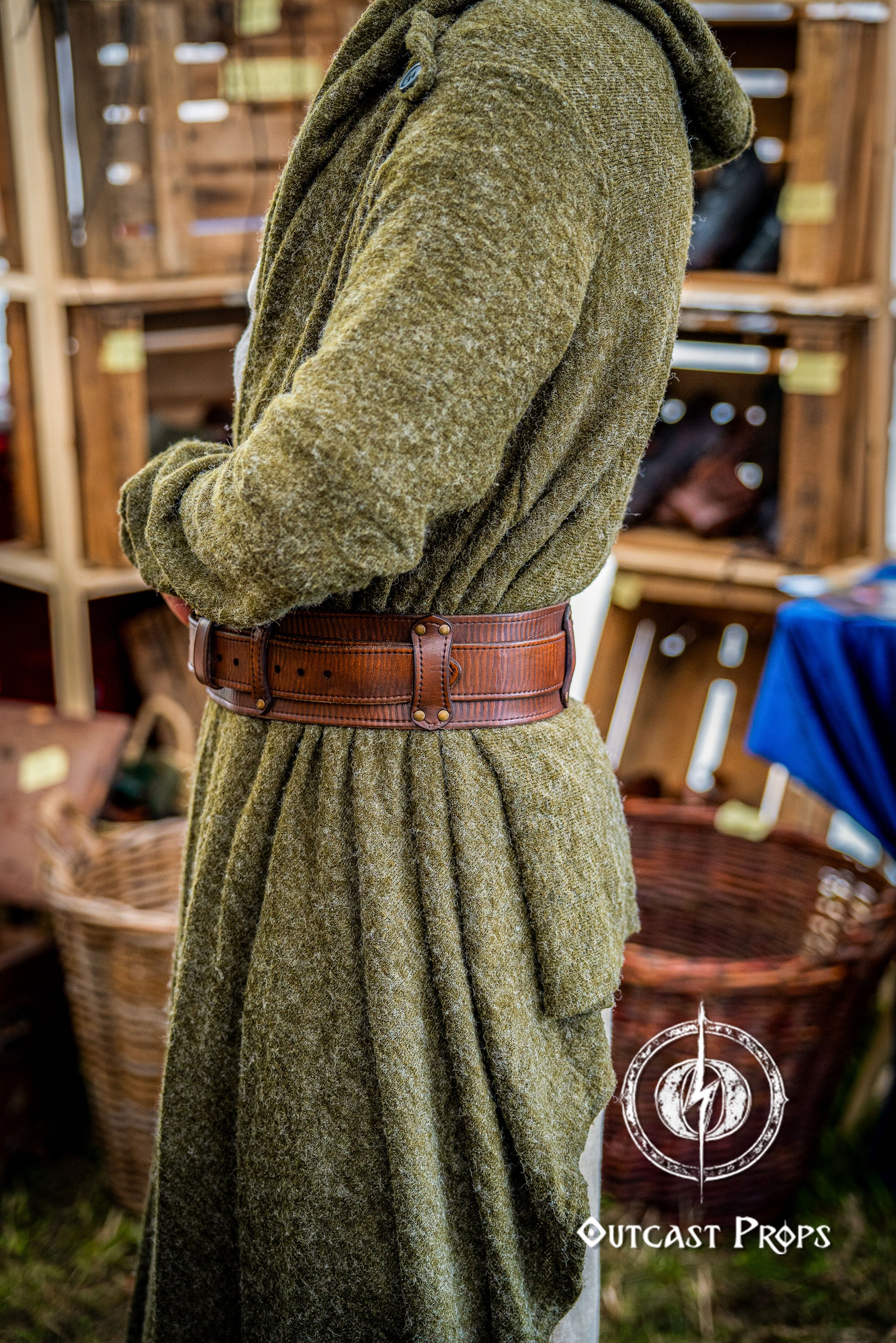 Awaken your character with this handcrafted leather belt, a piece that combines everyday functionality with the elegance of fantasy gear. The Wanderer Belt is designed for versatility: wear it as part of your daily outfit or let it become the finishing touch for your character at LARP, Renaissance fairs or cosplay events. Its modular structure allows you to use it with or without the wide frame, offering both a subtle, refined silhouette and a bold, heroic look. The exceptional craftsmanship is evident in every detail – from the flawless edges and elegant buckle to the deep textures and cinematic finishes achieved through unique aging techniques and epic painting. This is not just a belt, it is an accessory that adapts to nobles, rangers, travelers and adventurers alike, made from the highest quality vegetable-tanned leather and built to last a lifetime.