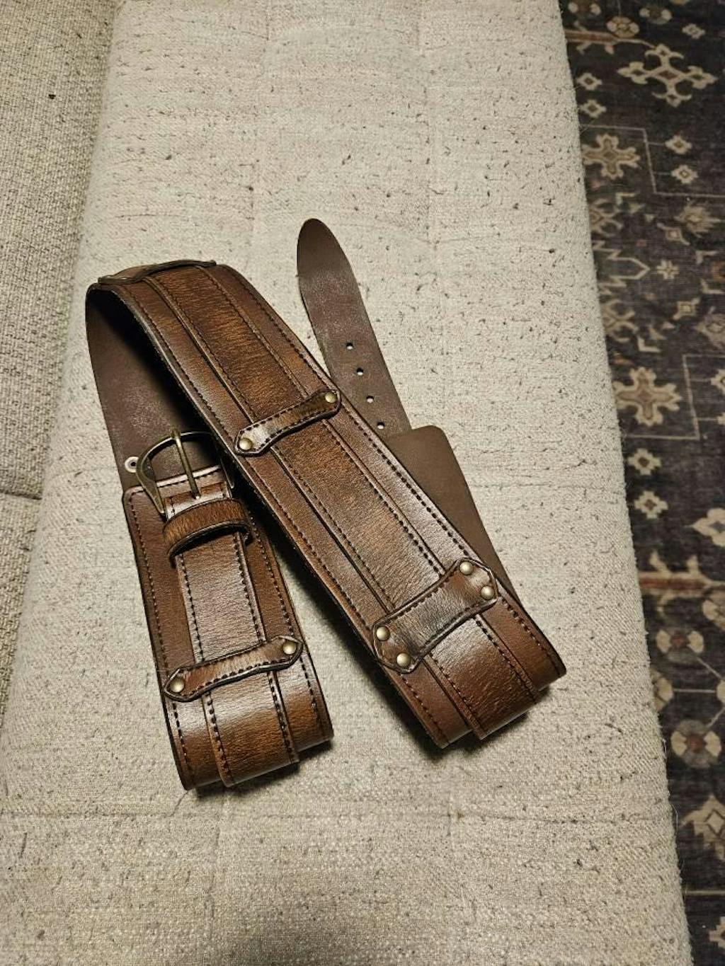 1 wide leather belt with removable inner strap. Clothing and accessories shown in photos not included.