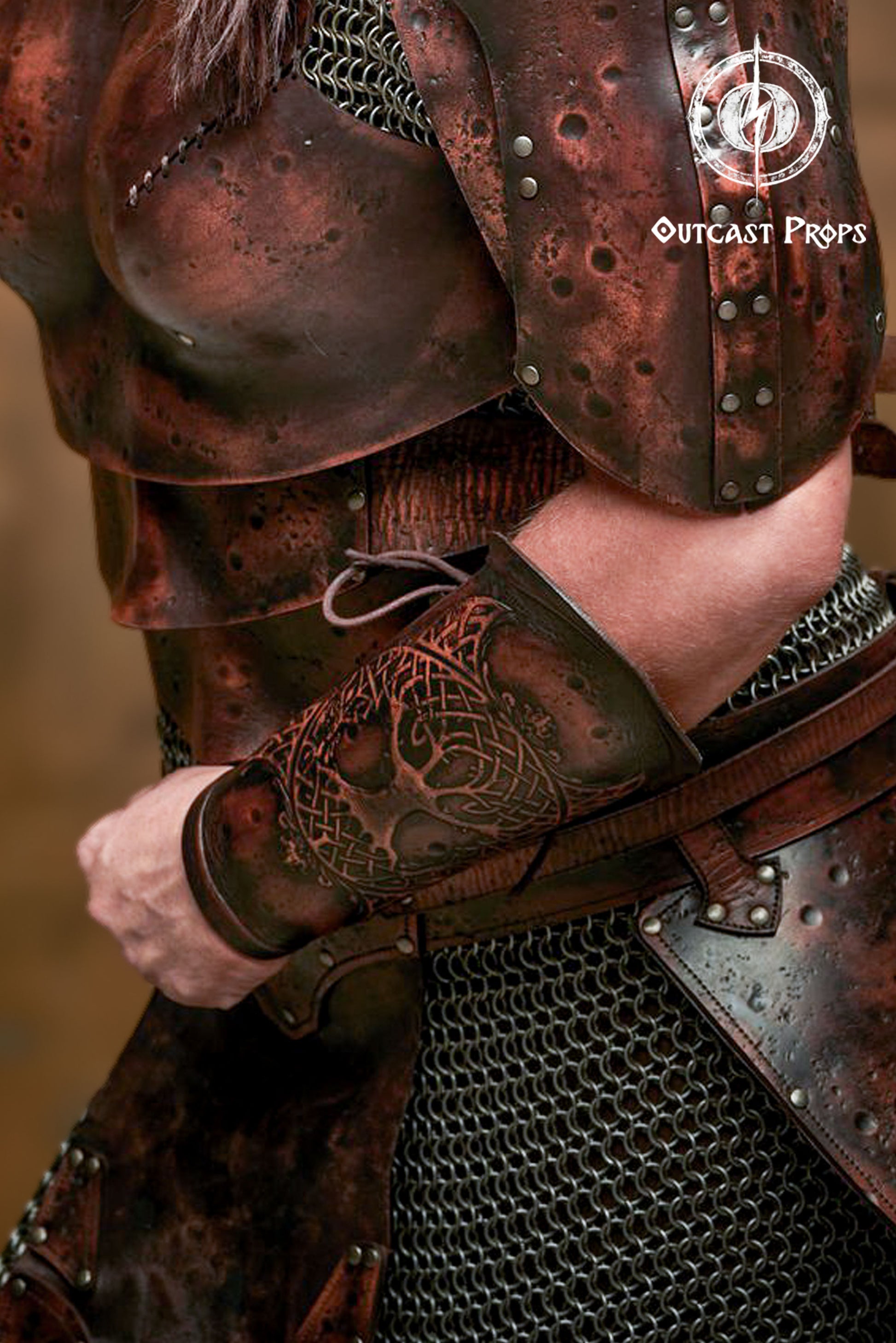 larp viking armor, leather bracers for cosplay, archery arm guard for larp, viking costume accessories, nordic warrior outfit, leather arm guard for sword fighting, celtic and elven characters.
